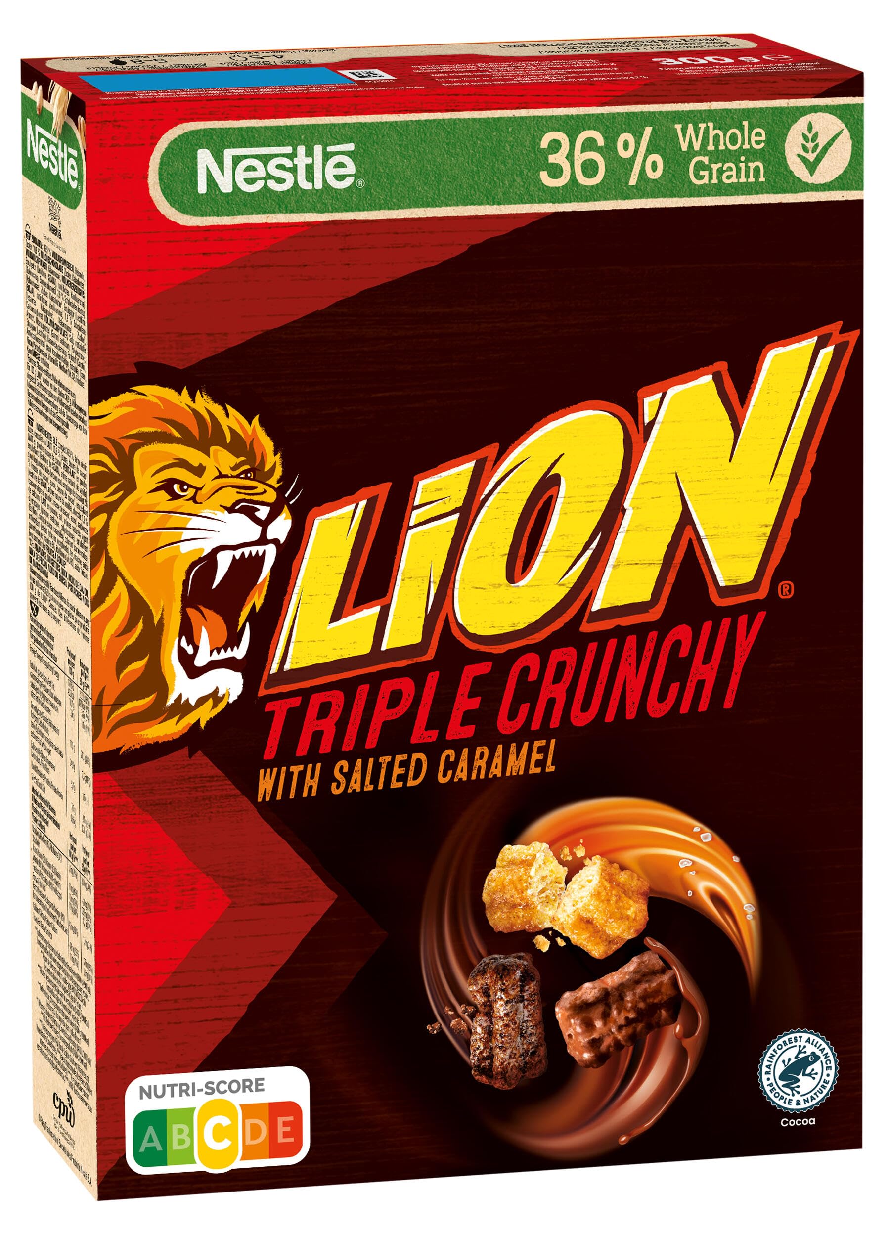 Lion Triple Crunchy - a delicious breakfast that the whole family will enjoy. The crunchy Lion Triple Crunchy tastes both in classic milk and with vegetable drinks. Ideal for fans of chocolate and salted caramel. Lion Triple Crunchy in churros form. • The grains in churros form combine three different flavors: delicious salt caramel, delicious chocolate flavor and a softly melting milk chocolate shell • 36 whole wheat with whole wheat flour as ingredient no. 1. The 300 g package contains up to 10 portions of delicious whole grain cereals with chocolate and the trendy salted-caramel flavor in churros form. For a delicious breakfast - every day: For whole grains, ingredient No. 1 uses the whole grain. This way, most of the valuable nutrients are retained. Nutri Score D: Nutri-Score was developed by independent expert panels to compare the nutritional value of foods within a category for this product based on 100 g. INGREDIENTS Ingredients: 36.6 whole grain wheat, 25.7 rice flour, sugar, 10.6 milk chocolate [sugar, cocoa butter, milk powder, cocoa mass, milk product, emulsifier (lecithins (SOYA)), natural vanilla flavouring], glucose syrup, palm oil, 2.6 chocolate coating [cocoa mass, sugar, cocoa butter, emulsifier (lecithins). (SOYA)), natural vanilla flavouring], 1.8 chocolate (low-fat cocoa powder, cocoa mass, sugar), calcium carbonate, milk powder, salt, natural flavourings, glazing agent (gum arabic, polydextrose). emulsifier (lecithin), caramel sugar syrup, coloring (carotene), antioxidant (highly tocopherol-containing extracts), iron, niacin, pantothenic acid, vitamin B6, riboflavin (vit. B2), folic acid. May contain nuts. INSTRUCTIONS FOR USE Add milk or plant drink and enjoy. See moreNestlé Lion Triple Crunchy, knapperige ontbijtgranen in churros-vorm met melkchocolade Salted Caramel, 36 volkorenaandeel, 1 stuk (1 x 300 g) Lion Triple Crunchy - een heerlijk ontbijt dat het hele gezin smaakt. De knapperige Lion Triple Crunchy smaken zowel in klassieke melk als met plantaardige dranken. Ideaal voor fans van chocolade en salted-karamel. Lion Triple Crunchy in churros-vorm. • De granen in churros-vorm combineren drie verschillende smaken: heerlijke zout caramel, heerlijke chocoladesmaak en een zacht smeltende huls van melkchocolade • 36 volkoren met volkorentarwemeel als ingrediënt nr. 1. De verpakking van 300 g bevat tot 10 porties heerlijke volkoren granen met chocolade en de trendy smaak salted-caramel in churros-vorm. Voor een heerlijk ontbijt - elke dag: Voor volkoren granen als ingrediënt nr. 1 wordt de hele korrel gebruikt. Zo blijven de meeste waardevolle voedingsstoffen behouden. Nutri Score D: Nutri-Score is ontwikkeld door onafhankelijke deskundigenpanels om de voedingswaarde van levensmiddelen binnen een categorie te vergelijken bij dit product op basis van 100 g. INGREDIËNTEN Ingrediënten: 36,6 volkorrel tarwe, 25,7 rijstmeel, suiker, 10,6 melkchocolade [suiker, cacaoboter, melkpoeder, cacaomassa, melkproduct, emulgator (lecithines (SOJA)), natuurlijk vanillearoma], glucosesië rup, palmolie, 2,6 chocoladecoating [cacaomassa, suiker, cacaoboter, emulgator (lecithines (SOJA)), natuurlijk vanillearoma], 1,8 chocolade (vetarm cacaopoeder, cacaomassa, suiker), calciumcarbonaat, melkpoeder, zout, natuurlijke aroma's, glansmiddel (Arabische gom, polydextrose). emulgator (lecithine), karamelsuikersiroop, kleurstof (caroteen), antioxidant (sterk tocoferolhoudende extracten), ijzer, niacine, pantotheenzuur, vitamine B6, riboflavine (vit. B2), foliumzuur. Kan noten bevatten. GEBRUIKSAANWIJZING Voeg melk of plantendrank toe en geniet. Meer bekijken
