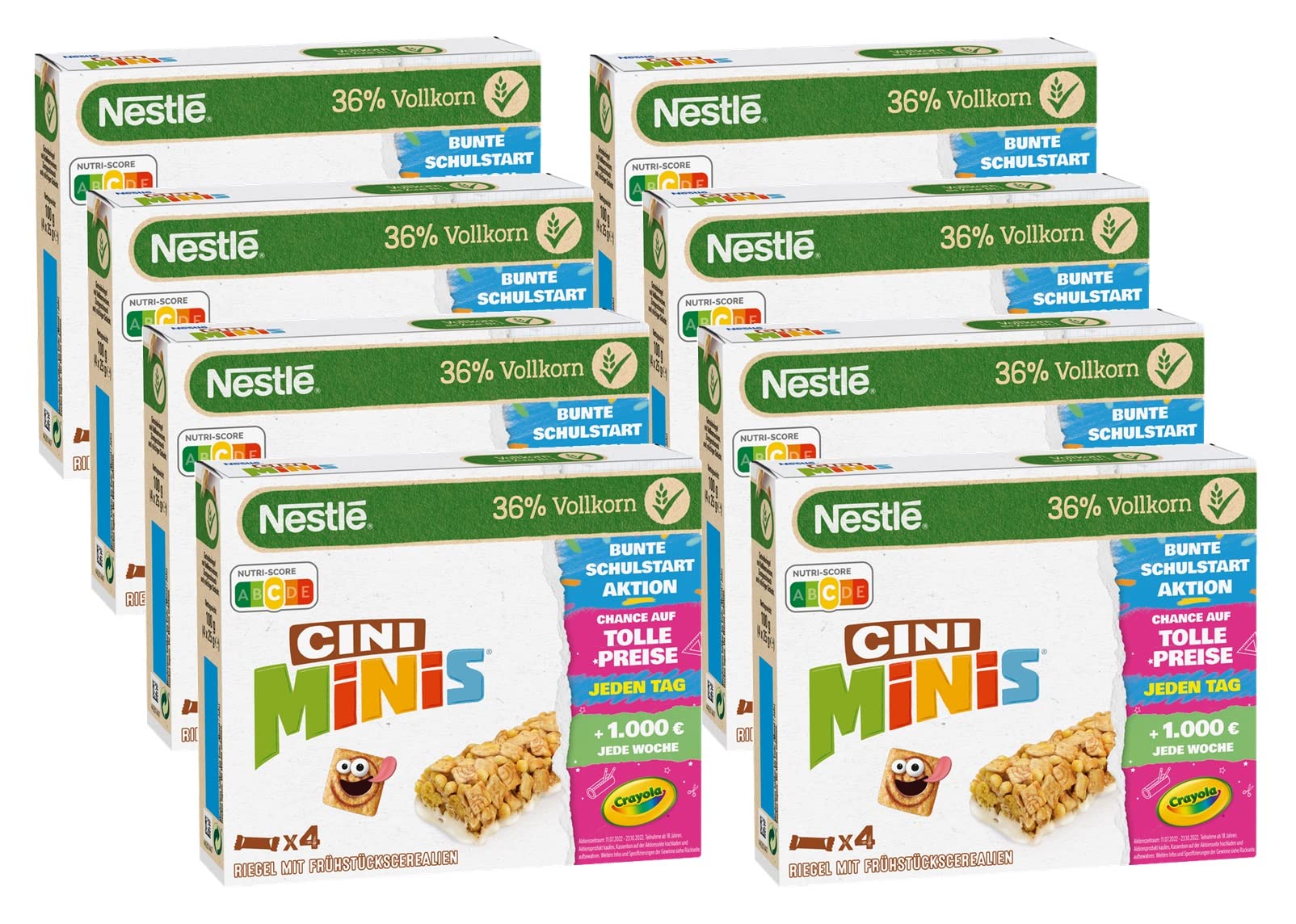 Anyone looking to treat their family on the go with their favorite brand, Cini Minis, should definitely try Nestlé Cini Minis Crispy Bars. As always, with a delicious cinnamon flavor. These cereal bars with small pieces of three different cereals are available in a pack of four. Not just for kids, but for adults too! Nestlé Cini Mini Bars Your favorite cereal brand, now on the go. Delicious cereal bar with whole wheat and cinnamon. With three varieties of calcium-enriched cereals. No artificial flavors. With the famous Cini Minis cinnamon taste. INGREDIENTS Ingredients: 39.5 cereals (26 whole wheat flour, 7.7 whole oat flakes, 5.3 rice flour, 0.5 corn semolina), 18 white coating [5.1 skimmed milk powder, coconut fat, maltodex. [Ingredients: granola, sugar, calcium carbonate, cocoa butter, emulsifier (lecithin), natural vanilla flavoring], glucose syrup, 10 sweetened condensed milk (wholemeal milk, sugar), invert sugar syrup, humectant (sorbitol, glycerin), sunflower oil, sugar, skimmed milk powder, maltodextrin, corn, starch, salt, vitamins and minerals (calcium carbonate, niacin, pantothenic acid, folic acid, vitamin B6, riboflavin [vitamin B2]), emulsifier (lecithin), antioxidant (extracts high in tocopherol), cinnamon, barley malt extract, colors (carotene, racnatto), natural flavoring. May contain soy and nuts.Nestlé Cini Minis Lot de 8 barres de céréales à la cannelle pour enfant (4 x 25 g) 8er Pack (4 x 25g)DESCRIPTION DU PRODUIT DESCRIPTION DU PRODUIT Celui qui souhaite faire plaisir à sa famille lors de vos déplacements avec la marque préférée Cini Minis devrait absolument essayer les barres croustillantes Nestlé Cini Minis. Comme d'habitude avec un délicieux goût de cannelle. Les barres de céréales avec de petits morceaux de céréales de 3 variétés sont disponibles en lot de 4. Non seulement les enfants peuvent accéder mais aussi les grands. Nestlé Cini Mini barre La marque de céréales préférée maintenant en déplacement. Délicieuse barre de céréales avec blé complet et cannelle. Avec 3 variétés de céréales au calcium. Sans arômes artificiels. Avec le célèbre goût de cannelle Cini Minis. INGRÉDIENTS Ingrédients: 39,5 de céréales (26 de farine de blé entier, 7,7 de flocons d'avoine pleins, 5,3 de farine de riz, 0,5 de semoule de maïs), 18 d'enrobage blanc [5,1 Lait écrémé en poudre, graisse de noix de coco, Maltodex. trin, sucre, calcul carbonate de cium, beurre de cacao, émulsifiant (lécithine), arôme naturel de vanille], sirop de glucose, 10 de LAIT CONDENTIF sucré (LAIT COMPLE, sucre), sirop de sucre inverti, humectant (sorbitol, glycérine), huile de tournesol, sucre, lait écrémé en poudre, maltodextrine, maïs, amidon, sel, vitamine et minéraux (carbonate de calcium, niacine, acide pantothénique, acide folique, vit. B6, riboflavine [Vit. B2]), émulsifiant (lécithine), antioxydant (extraits fortement contenant du tocophérol), cannelle, EXTRAIT DE MALAGE d'orge, colorants (carotène, racnatto), arôme naturel. Peut contenir du SOJA et des Noix.