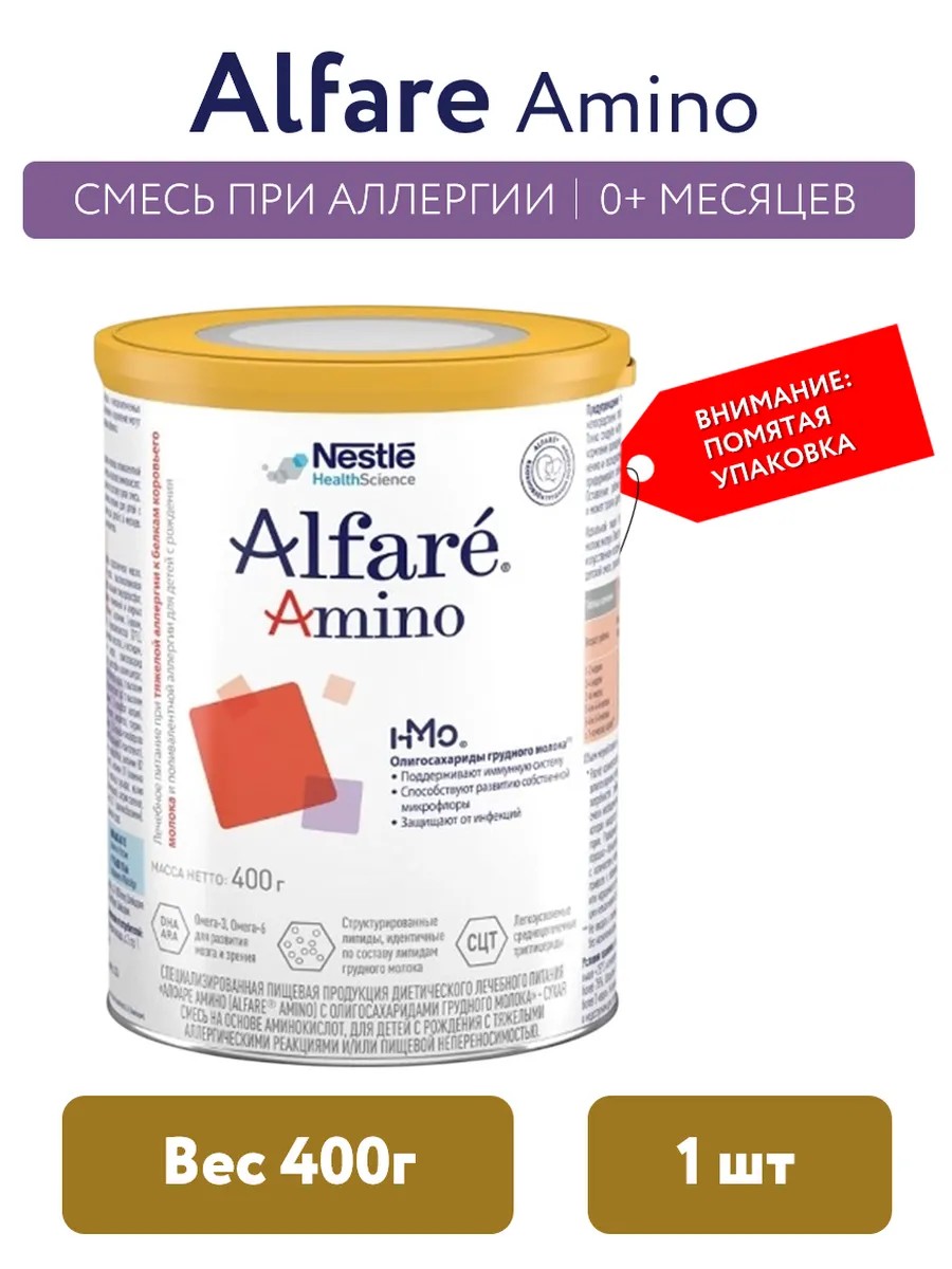 АЛФАРЕ АМИНО (ALFARE AMINO) с олигосахаридами грудного молока - специально созданная смесь на основе аминокислот и свободная от молочного белка и лактозы, использование которой позволяет полностью избежать молочных и пищевых аллергенов.