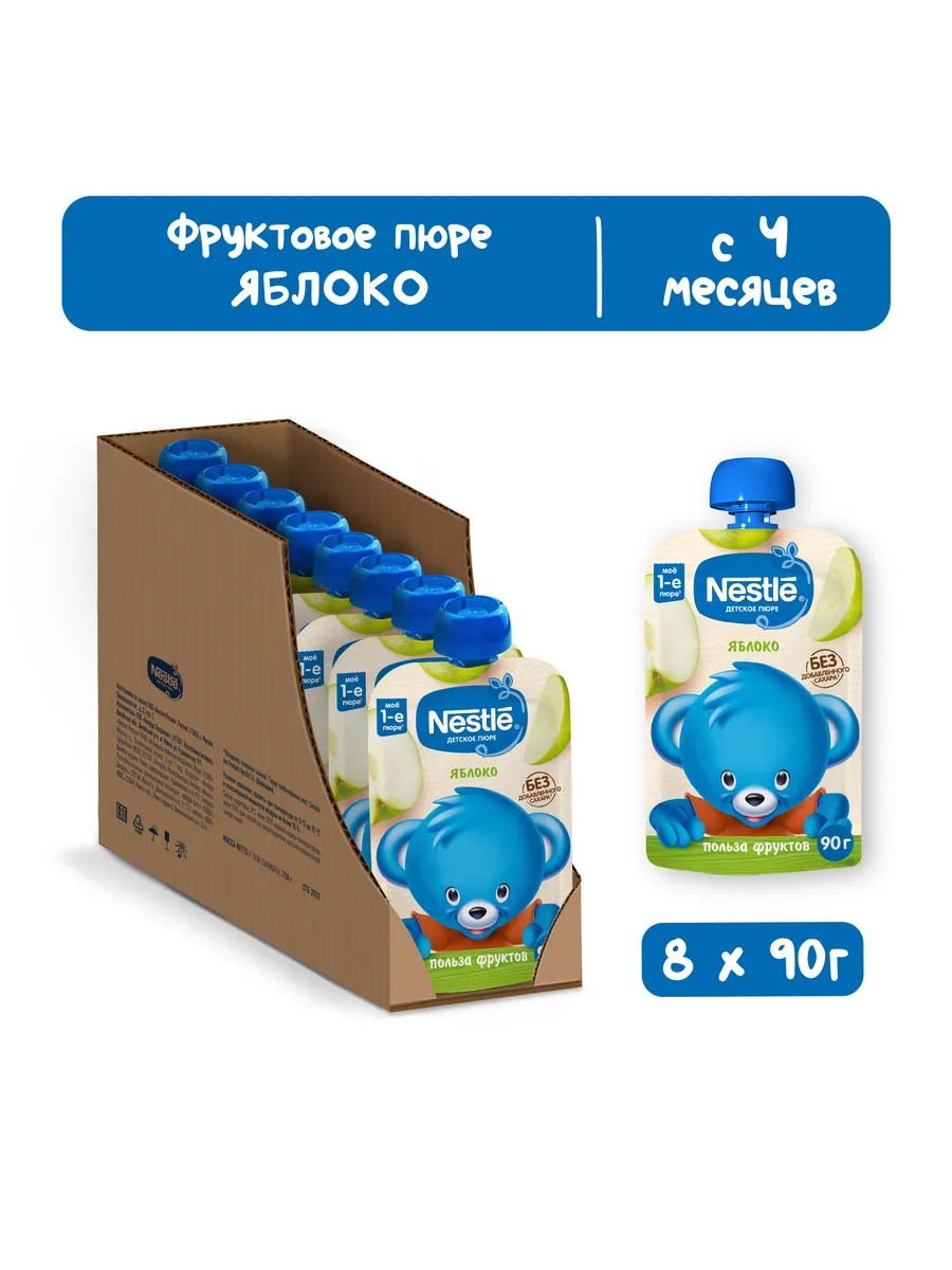 Новинка в линейке Nestle - детское пюре Яблоко. Яблочное пюре Нестле вкусное, полезное и 100% натуральное лакомство из спелых фруктов. Оно изготовлено без добавления крахмала и сахара, не содержит искусственных красителей, ароматизаторов и консервантов. Только яблоко и ничего более все как вы любите!Подходит для начала фруктового прикорма100% фруктовБез добавления сахараУсловия хранения: хранить при температуре от 0 до 25 ⁰С и относительной влажности не более 75%. Открытую упаковку хранить в холодильнике при температуре от 0 до 6 ⁰С не более суток.Всемирная организация здравоохранения (ВОЗ) рекомендует исключительно грудное вскармливание в первые 6 месяцев жизни. Проконсультируйтесь со специалистом, когда вводить прикорм ребенку. После введения прикорма грудное вскармливание следует продолжать как можно дольше. Компания Nestl поддерживает данную рекомендацию.Детское фруктовое пюре Nestl Яблоко для детей с 4 месяцев в соответствии с законодательством РФ.