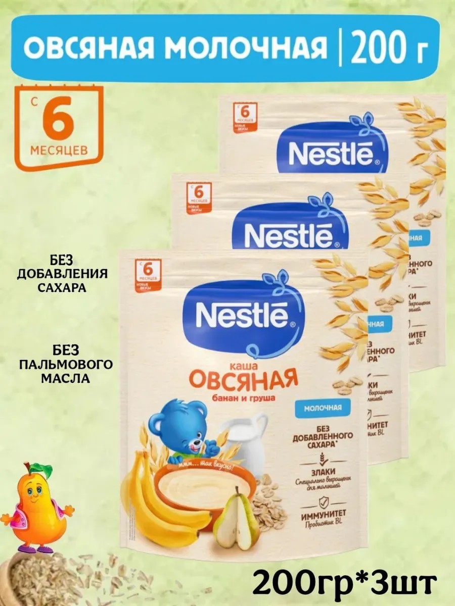 Каша молочная овсяная груша-банан с 6 месяцев, 200г, 3шт