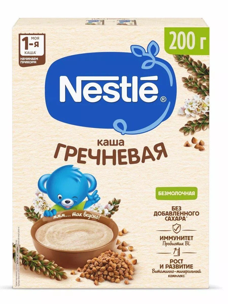Каша Nestle гречневая гипоаллергенная безмолочная 200 гр для детей с 4 месяцев. Бифидобактерии Bl - живые полезные бактерии, которые поддерживают здоровую микрофлору кишечника и способствуют комфортному пищеварению. При регулярном употреблении пробиотики укрепляют иммунитет малыша. Iron+ Особенный комплекс витаминов и минеральных веществ для здорового роста и развития. Железо, йод, витамины С и В1 не только имеют важное значение в физическом развитии малыша, но и играют ключевую роль в формировании мозга, памяти и интеллекта. Технология «бережного расщепления злаков» позволяет сохранить естественную сладость злаков и существенно снизить добавление сахара. Благодаря этой технологии каша становится воздушной и легко разводится без комочков. Условия хранения: Закрытую пачку хранить в сухом месте при температуре не более 25 °C и относительной влажности воздуха не более 75%. Вскрытый пакет следует плотно закрыть. После вскрытия хранить не более 2 недель.