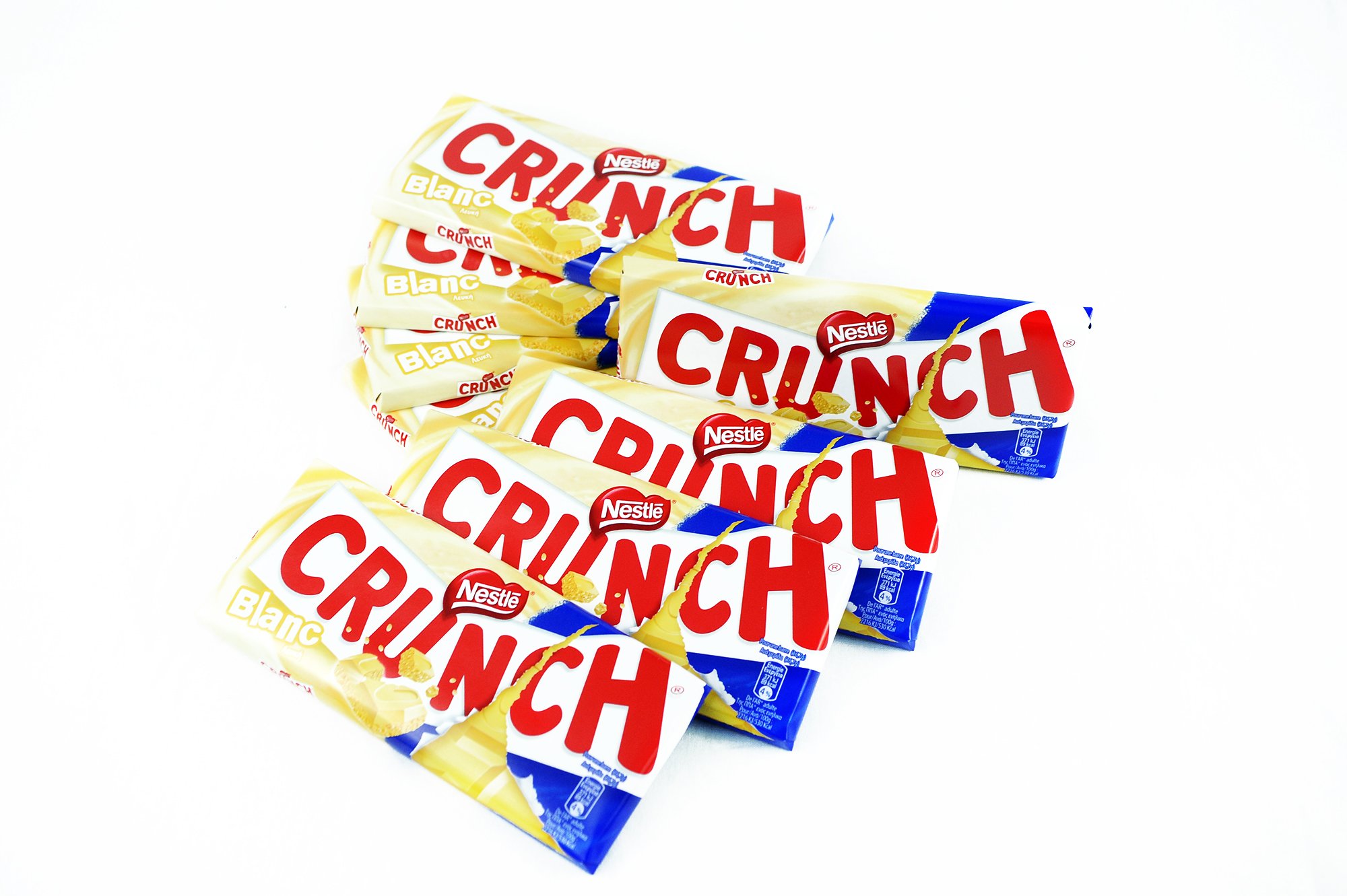 White chocolate with crispy rice.Size: 100g, pack of 8. Brand: Nestlé. Product type: CHOCOLATE CANDY. NESTLE CRUNCH WHITE CHOCOLATE CRISPY RICE – 8 x 100g. Chocolat blanc avec riz croustillant.Taille : 100 g, lot de 8. Marque : Nestlé. Type de produit : BONBON CHOCOLAT. NESTLE CRUNCH CHOCOLAT BLANC RIZ CRISÉ – 8 x 100 gr.