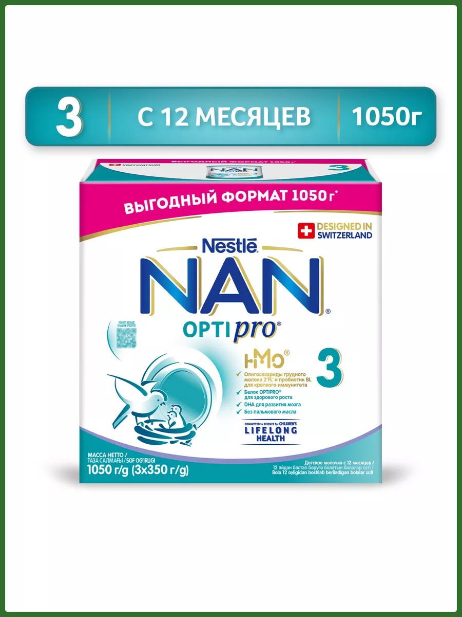 В течение первых месяцев жизни питание крайне важно для здорового развития вашего ребенка. В этот период необходимо давать ребенку соответствующее питание, включая правильное количество и качество белка, которое поможет заложить крепкую основу его здоровья сегодня и в будущем. NAN OPTIPRO 3 - молочная смесь, предназначенная для кормления детей с 12 месяцев. Смесь разработана на основе данных, полученных благодаря исследованям питания Nestle в области обеспечения здоровья детей на протяжении всей жизни. Смесь содержит уникальную комбинацию ингредиентов: OPTIPRO, 3’ FL и BL Probiotic , которые поддержат здоровое развитие вашего ребенка в период введения прикорма, помогая вам заложить крепкую основу для будущего здоровья Вашего ребенка.