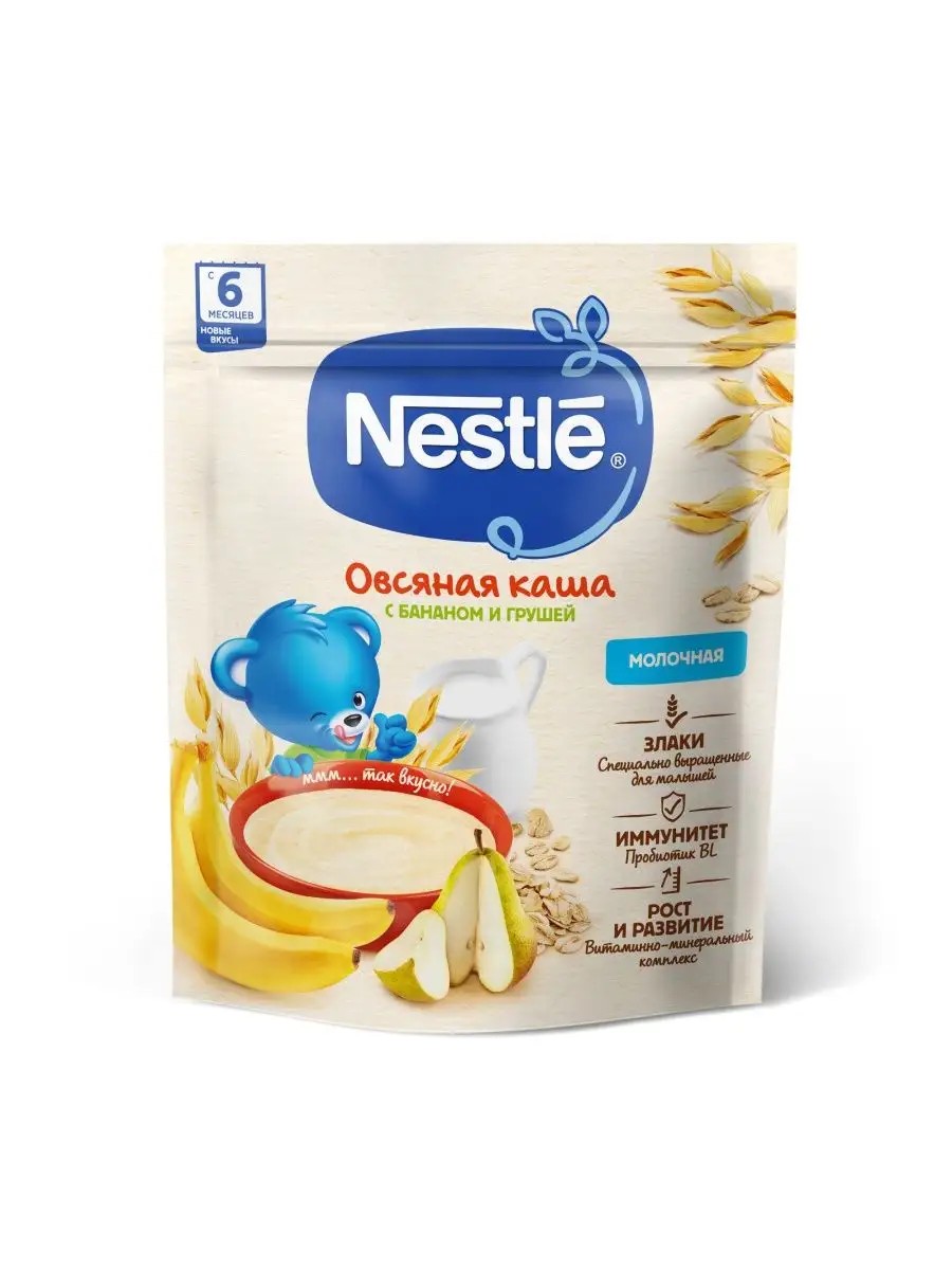 "Молочная овсяная каша с грушей и бананом для детей старше 6 месяцев. ВАЖНОЕ ПРИМЕЧАНИЕ: идеальной пищей для грудного ребенка является молоко матери. Всемирная организация здравоохранения рекомендует исключительно грудное вскармливание в первые шесть месяцев и последующее введение прикорма при продолжении грудного вскармливания. Для принятия решения о сроках и способе введения данного продукта в рацион ребенка необходима консультация специалиста. Каша приготовлена с использованием особой технологии бережного расщепления злаков CHE. Благодаря этому в продукте появляется естественный сладкий вкус, каша лучше усваивается и имеет повышенную пищевую ценность. Является полезным сбалансированным прикормом для здоровых детей. Каша обогащена пробиотиками - живыми бифидобактериями BL. Они способствуют нормализации пищеварения, росту здоровой микрофлоры и укреплению иммунитета, что очень важно в период введения прикорма. Каша содержит комплекс витаминов и минеральных веществ iRON+ для здорового роста и развития.