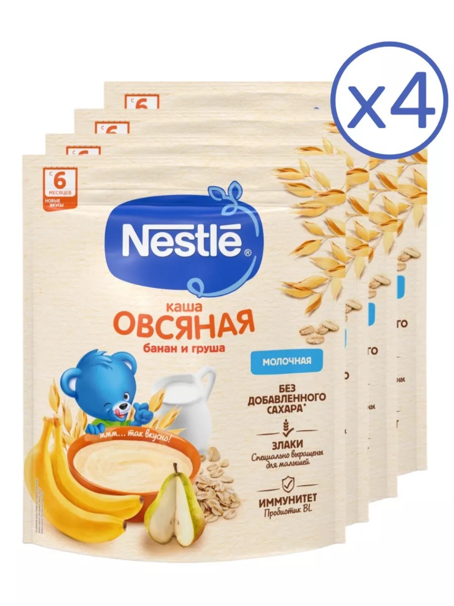 Каша детская молочная Nestle овсяная груша-банан с 6 месяцев 200 г 4 шт