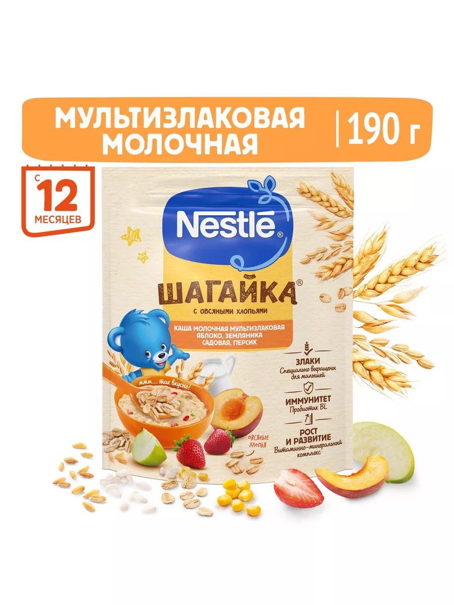 Каша молочная Nestle 5 злаков яблоко-земляника-персик с 12 месяцев 190 г