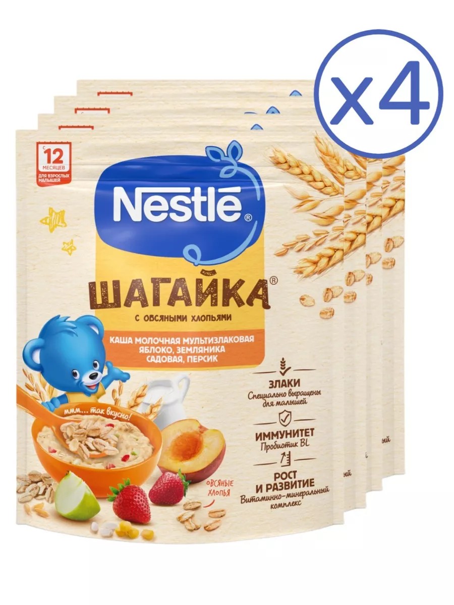 Каша молочная Nestle 5 злаков яблоко-земляника-персик с 12 месяцев 190 г 4 шт