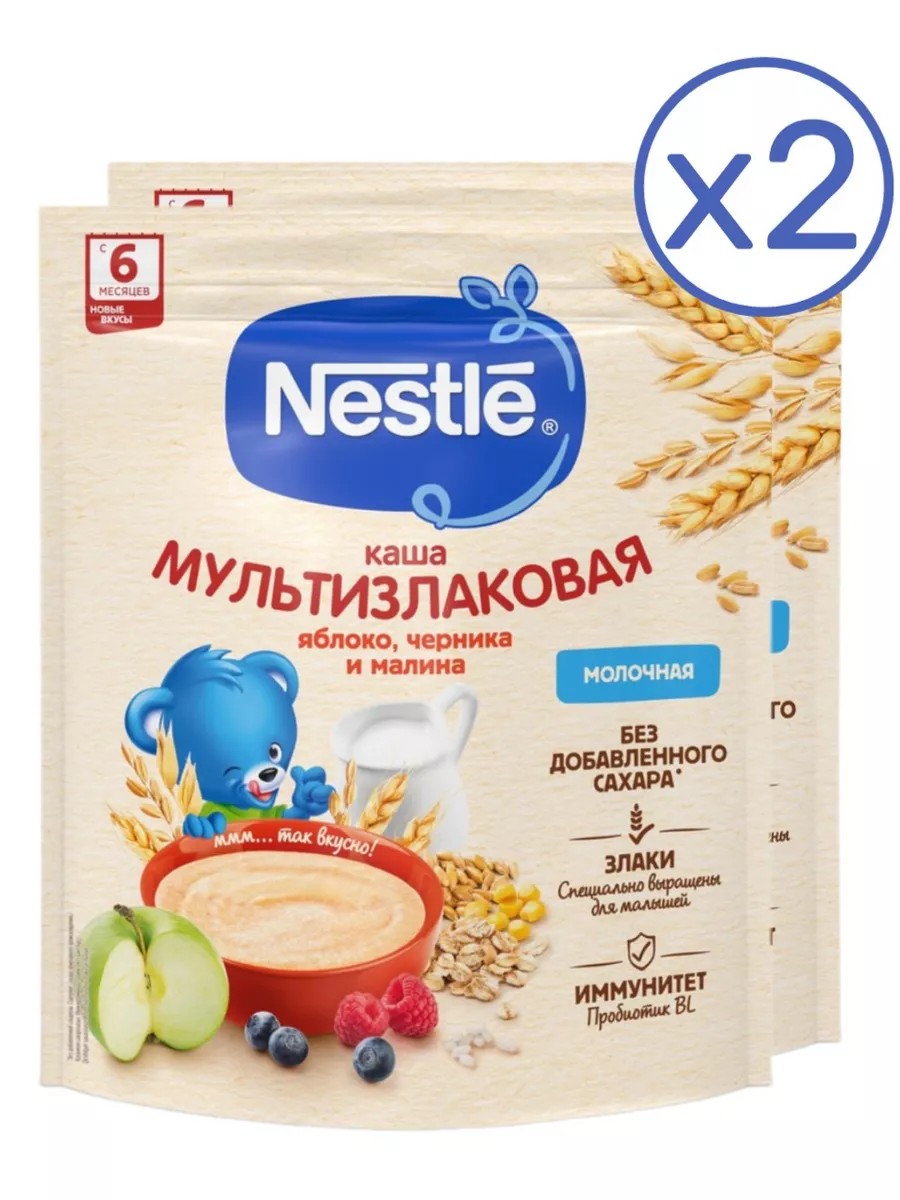 Каша молочная Nestle мультизлаковая с яблоком, черникой и малиной с 6 месяцев 200 г 2 шт