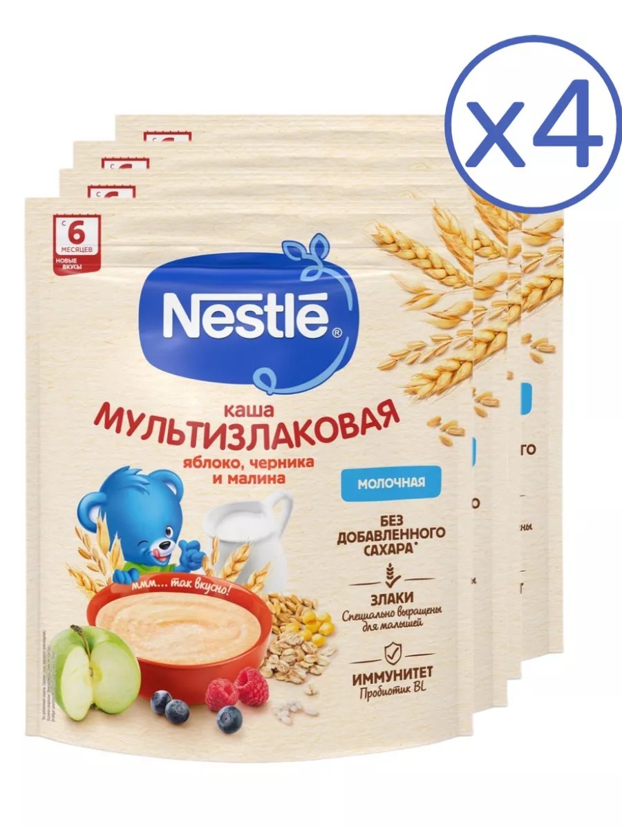 Каша молочная Nestle мультизлаковая с яблоком, черникой и малиной с 6 месяцев 200 г 4 шт