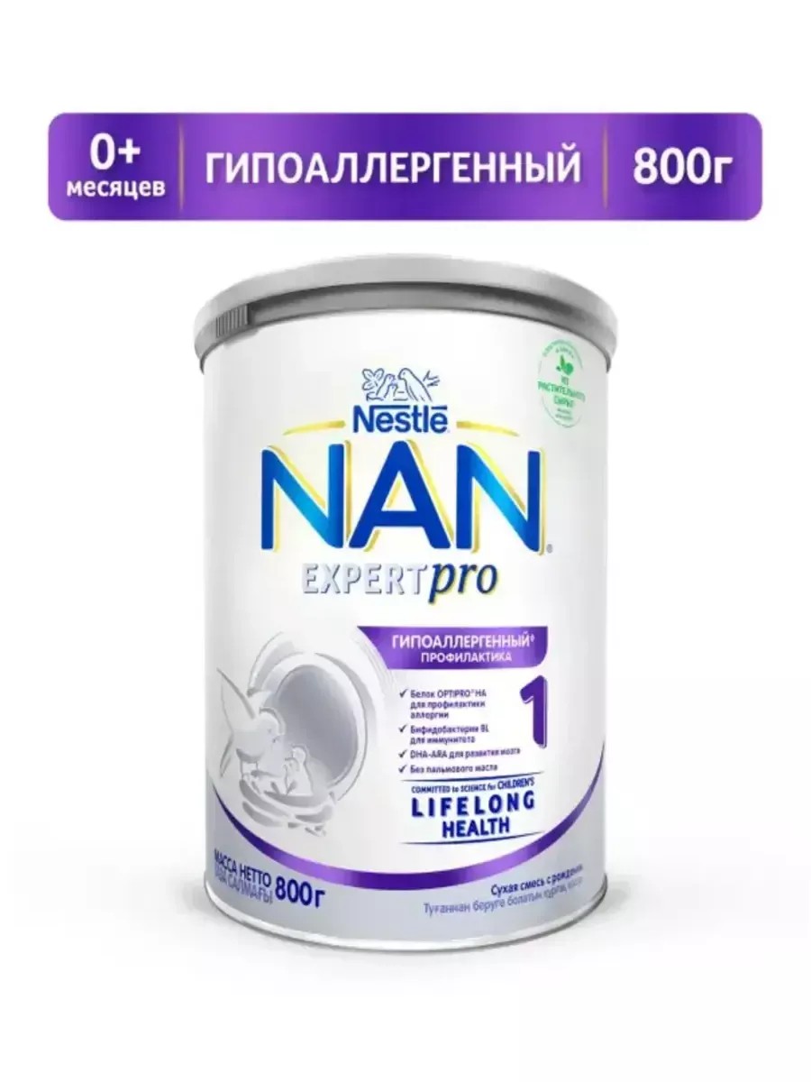 NAN Гипоаллергенный 1 сухая молочная смесь, 800гр