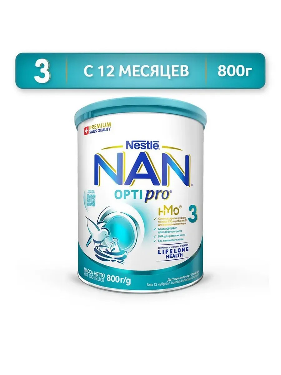 НАН 3 OPTIPRO - специально разработанное детское молочко для питания детей от 1 года до 1,5 лет, созданное на основе данных, полученных благодаря исследованям Nestle в области обеспечения здоровья детей на протяжении всей жизни.Молочко содержит уникальную комбинацию ингредиентов: OPTIPRO 2 FL и BL Probiotic, которые поддержат здоровое развитие вашего ребенка , помогая вам заложить крепкую основу для будущего здоровья Вашего ребенка.OPTIPRO - оптимизированный белковый комплекс, обеспечивающий ребенка правильным количеством белка, которое требуется ему для оптимальтного роста.Олигосахарид 2 FL, олигосахарид структурно идентичный наиболее распространенному виду олигосахаридов грудного молока. Олигосахариды 2 FL помогают поддерживать иммунитет.BL PROBIOTIC: натуральный пробиотик, который помогает поддерживать здоровую иммунную систему малыша.