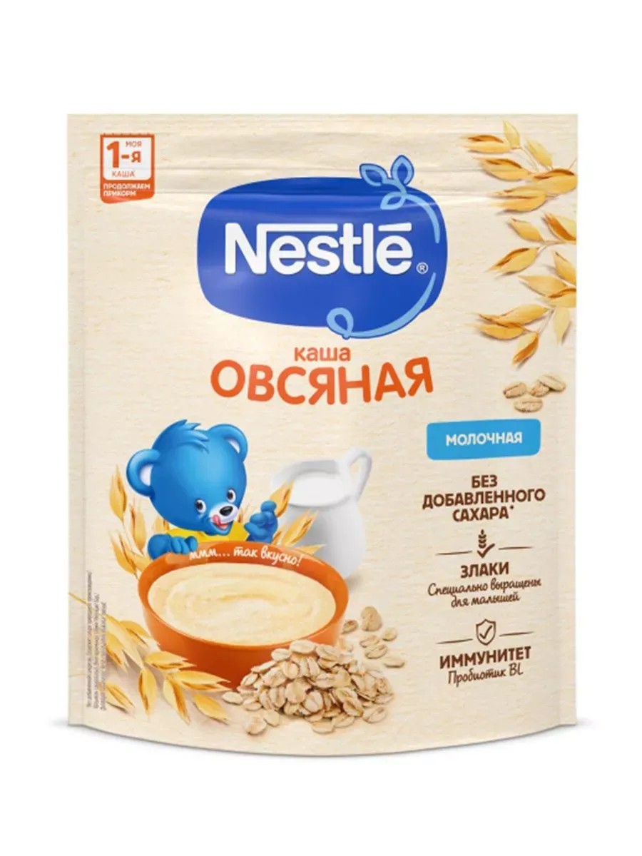 Каша Nestle овсяная молочная 200 гр для детей с 5 месяцев. Молочная овсяная каша для детей старше 5 месяцев согласно законодательству РФ. Каша Nestlé приготовлена с использованием особой технологии бережного расщепления злаков CHE. Благодаря этому в продукте появляется естественный сладкий вкус, каша лучше усваивается и имеет повышенную пищевую ценность. Является полезным сбалансированным прикормом для здоровых детей. Каша обогащена пробиотиками - живыми бифидобактериями BL. Они способствуют нормализации пищеварения, росту здоровой микрофлоры и укреплению иммунитета, что очень важно в период введения прикорма. Каша содержит комплекс витаминов и минеральных веществ iRON+ для здорового роста и развития. Рекомендации по приготовлению: Вымойте руки и возьмите чистую посуду. Вскипятите питьевую воду в течение 5 мин и дайте ей остыть до 40 градусов С. Налейте в чистую тарелочку 150 мл воды. Отмерьте 50 г сухой каши (6 столовых ложек) в отдельную мисочку. Постепенно добавляйте в тарелочку с водой сухую кашу, непрерывно помешивая до однородного состояния. Начинайте вводить прикорм с 1 столовой ложки каши, разведенной 4-5 ложками кипяченой воды. Постепенно увеличивайте количество каши до одной целой порции. Условия хранения: закрытую пачку хранить в сухом месте при температуре не более 25 °С и относительной влажности воздуха не более 75 %. После приготовления каши вскрытый пакет следует плотно закрыть. После вскрытия упаковки продукт следует хранить не более 2-х недель. Меры предосторожности: Не варите! Кормите ребенка чистой ложкой. Кашу следует готовить непосредственно перед каждым кормлением. Не храните оставшуюся после кормления разведенную кашу.