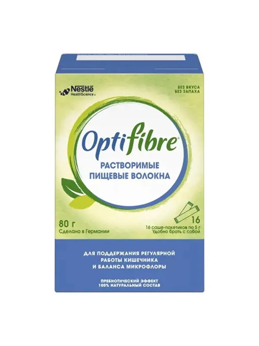 Этот продукт имеет форму порошка, который находится в пакетиках по 5 грамм. Препарат состоит из растворимых и нерастворимых волокон, которые необходимы для правильной и здоровой работы кишечника. Optifiber предотвращает запоры, способствует выводу токсинов из организма, питает микрофлору кишечника и укрепляет иммунитет. Принимать Optifiber очень просто: добавьте один пакет в свой обычный напиток и выпейте. В продукт не добавлены консерванты и искусственные красители, что делает его абсолютно безопасным для здоровья.