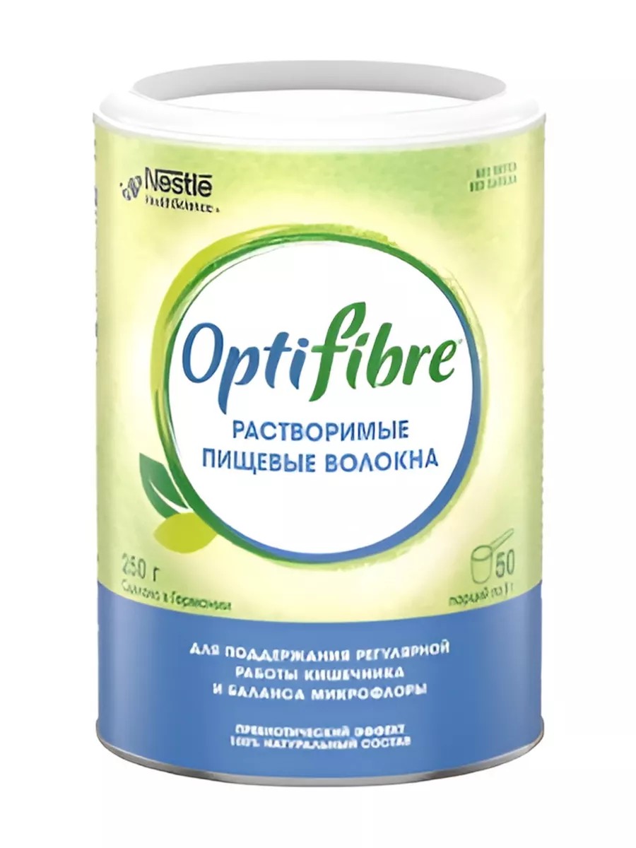 Растворимые пищевые волокна ОПТИФАЙБЕР, порошок.Пищевые волокна «Оптифайбер» (Optifibre) не обладают вкусом, запахом и полностью растворимы.100% натуральный состав. Без добавления сахара*.Не содержит сенну, лактозу, глютен, ГМО, подсластители, красители, ароматизаторы и консерванты.*Содержит сахара природного происхождения.Пищевые волокна могут способствовать:-Регулярной работе и освобождению-Восстановлению и сохранению баланса кишечной микрофлоры-Уменьшению вздутия и избыточного газообразованияПищевые волокна, из которых состоит Optifibre, не раздражают кишечник и не вызывают привыкания.Оптифайбер - 100% натуральный продукт для поддержания комфортной и регулярной работы кишечника, состоит из полностью растворимых пищевых волоконОптиФайбер натуральное средство для поддержания комфортной и регулярной работы кишечника, которое оказывает двойное действие:- Пищевые волокна растительного происхождения помогают смягчить и правильно сформировать стул, чтобы облегчить его естественное прохождение через кишечник и поддерживать регулярность. Способствует уменьшению вздутия и повышенного газообразования.- ОптиФайбер содержит пребиотические пищевые волокна, которые питают полезные бактерии в кишечнике (Lactobacilli и Bifidobacteria). Это помогает восстановить и поддерживать баланс кишечной микрофлоры для достижения долгосрочного эффекта.ОптиФайбер действует физиологично, не раздражает кишечник и не вызывает привыкание. Подходит для регулярного применения при частых запорах.Показания к применению:- запоры- синдром раздраженного кишечника с преобладанием запоров - дизбактериоз желудочно-кишечного тракта
