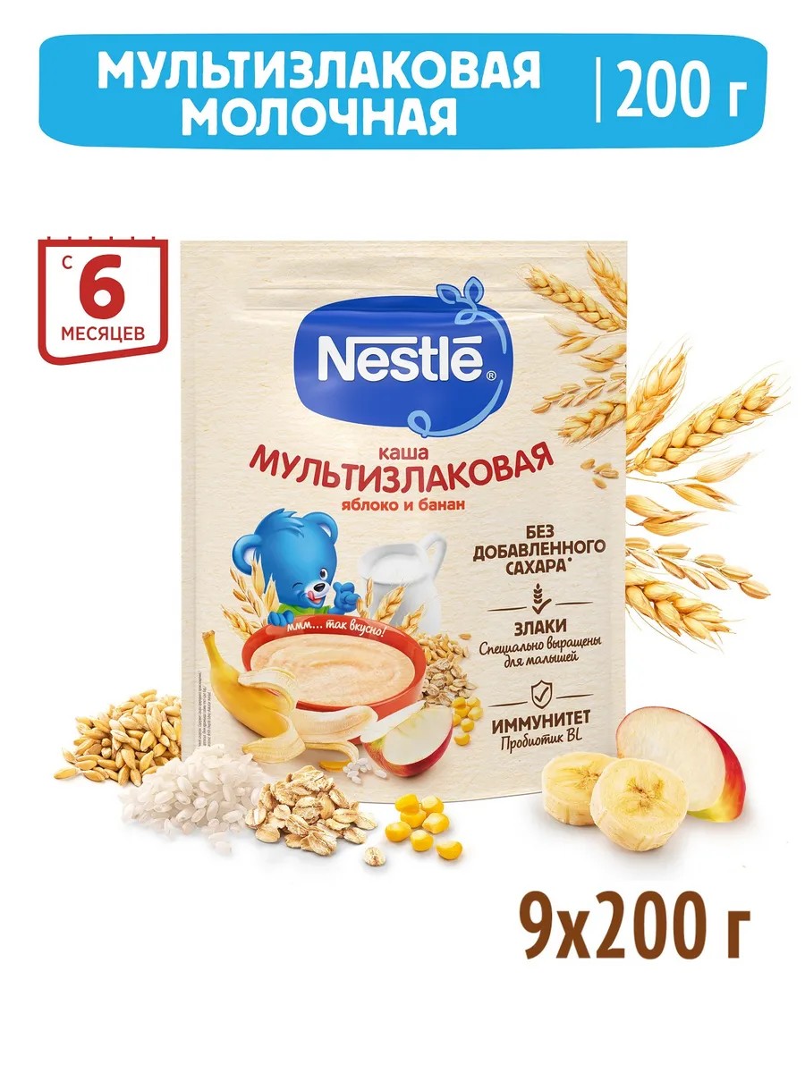 Молочная мультизлаковая каша с яблоком и бананом для питания детей старше 6 месяцев согласно законодательству РФ.