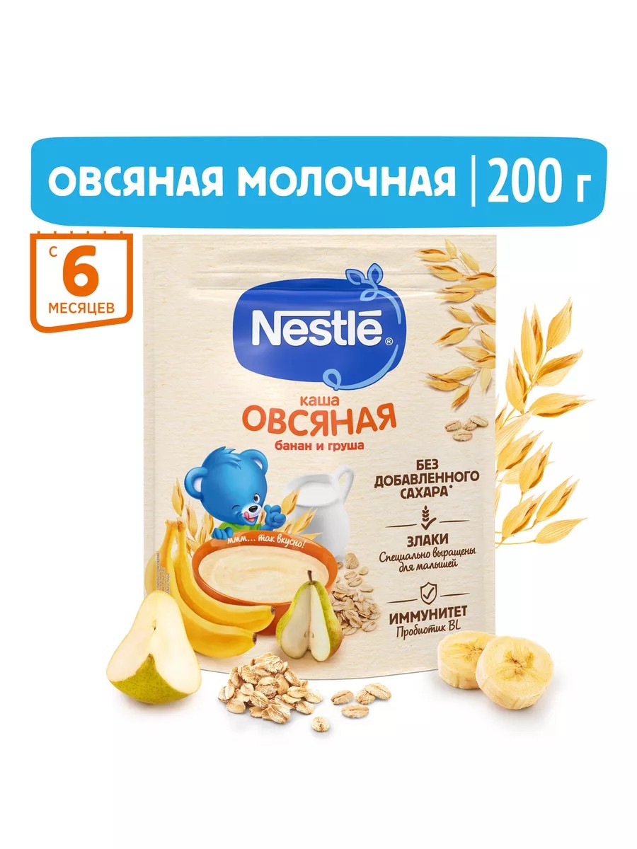 Каша молочная Nestle овсяная груша-банан с 6 месяцев 200 г