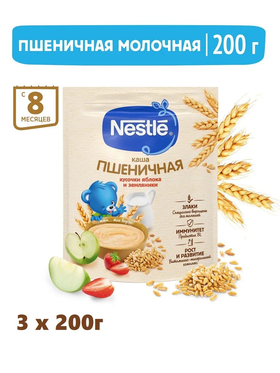 Каша Nestle является полезным сбалансированным прикормом для здоровых детей и отлично подходит для расширения рациона. Обогащена пробиотиками - полезными бифидобактериями BL. Они способствуют нормализации пищеварения, росту здоровой микрофлоры и укреплению иммунитета, что очень важно в период прикорма. Каша содержит комплекс витаминов и минеральных веществ для гармоничного роста и развития. Добавление фруктовых кусочков способствует развитию как вкусовых восприятий малыша, так и жевательных навыков, что очень важно в период постепенного перехода к взрослому меню.