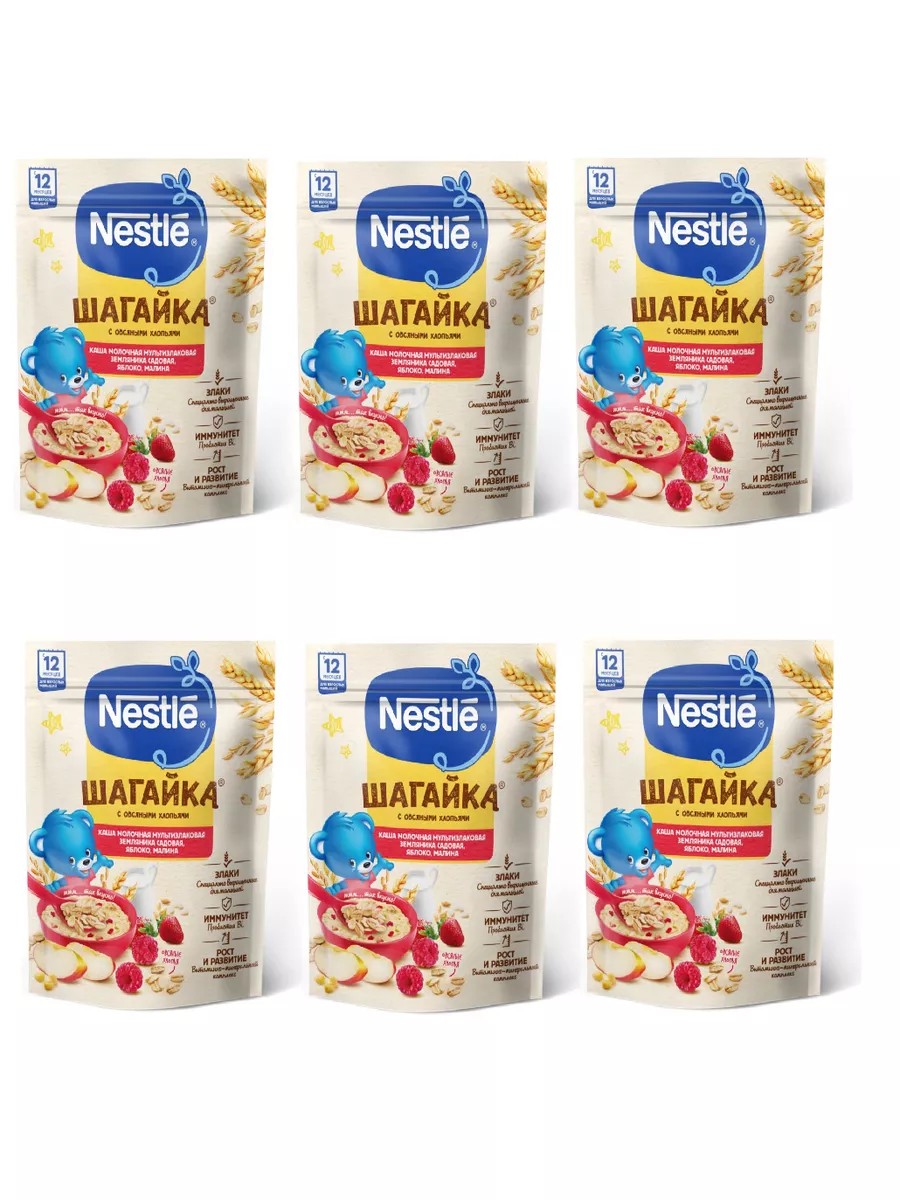 Nestle. Каша молочная Злаковая земляника-яблоко-малина, 190 г, 6 шт.