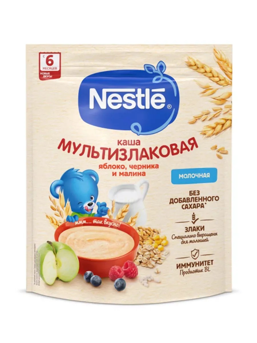 Каша Nestle мультизлаковая с яблоком, черникой и малиной молочная 200 гр для детей с 6 месяцев. Молочная мультизлаковая каша с яблоком, черникой и малиной для питания детей старше 6 месяцев согласно законодательству РФ. Каша Nestlé приготовлена с использованием особой технологии бережного расщепления злаков CHE. Благодаря этому в продукте появляется естественный сладкий вкус, каша лучше усваивается и имеет повышенную пищевую ценность. Является полезным сбалансированным прикормом для здоровых детей. Каша обогащена пробиотиками - живыми бифидобактериями BL. Они способствуют нормализации пищеварения, росту здоровой микрофлоры и укреплению иммунитета, что очень важно в период введения прикорма. Каша содержит комплекс витаминов и минеральных веществ iRON+ для здорового роста и развития. Рекомендации по приготовлению: Вымойте руки и возьмите чистую посуду. Вскипятите питьевую воду в течение 5 мин и дайте ей остыть до 40 °C. Налейте в чистую тарелочку 150 мл воды. Отмерьте 50 г сухой каши (6 столовых ложек) в отдельную мисочку. Постепенно добавляйте в тарелочку с водой сухую кашу, непрерывно помешивая до однородного состояния. Начинайте вводить прикорм с 1 столовой ложки каши, разведенной 4-5 ложками кипяченой воды. Постепенно увеличивайте количество каши до одной целой порции. Условия хранения: закрытую пачку хранить в сухом месте при температуре не более 25 °C и относительной влажности воздуха не более 75 %. После приготовления каши вскрытый пакет следует плотно закрыть. После вскрытия упаковки продукт следует хранить не более 2-х недель. Меры предосторожности: Не варите! Кормите ребенка чистой ложкой. Кашу следует готовить непосредственно перед каждым кормлением. Не храните оставшуюся после кормления разведенную кашу.