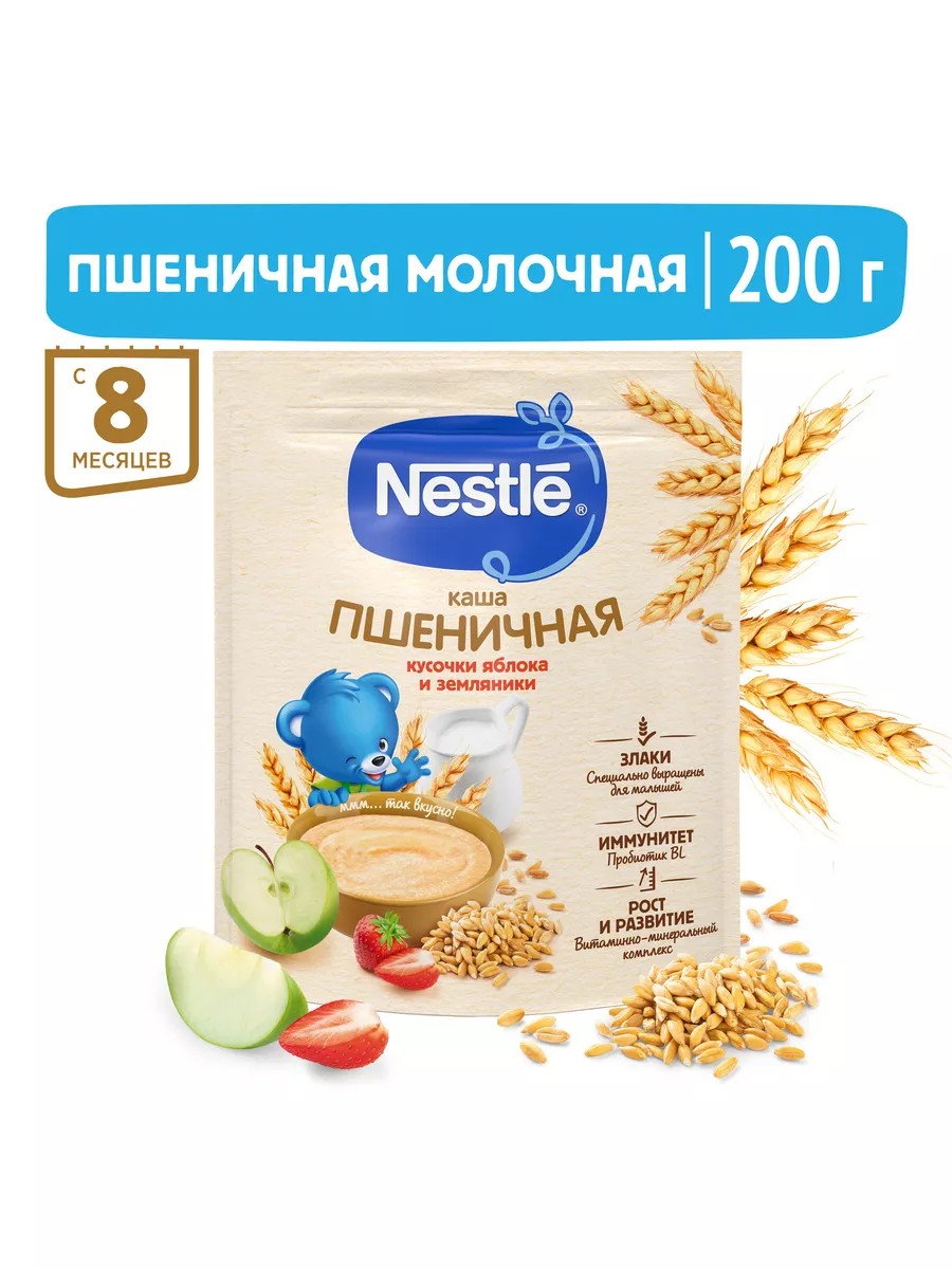 Каша приготовлена с использованием особой технологии бережного расщепления злаков CHE. Благодаря этому в продукте появляется естественный сладкий вкус, каша лучше усваивается и имеет повышенную пищевую ценность. Каша является полезным сбалансированным прикормом для здоровых детей и отлично подходит для расширения рациона.Обогащена пробиотиками - живыми бифидобактериями BL. Они способствуют нормализации пищеварения, росту здоровой микрофлоры и укреплению иммунитета, что очень важно в период введения прикорма. Каша содержит комплекс витаминов и минеральных веществ iRON+ для здорового роста и развития. Добавление фруктовых кусочков (яблоко и земляника) способствует развитию как вкусовых восприятий малыша, так и жевательных навыков, что очень важно в период постепенного перехода к взрослому меню.