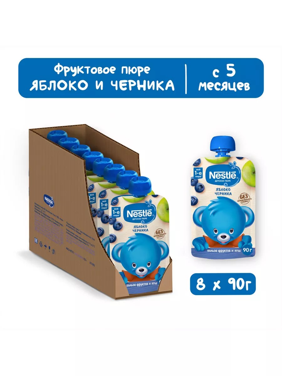 Попробуйте детское пюре Яблоко-Черника - новинку в линейке Nestle . Природные свойства двух фруктов объединяются в одной рецептуре, чтобы подарить вашему малышу натуральное и полезное лакомство. Хороший выбор для знакомства малыша с новыми вкусами. 100% фруктов