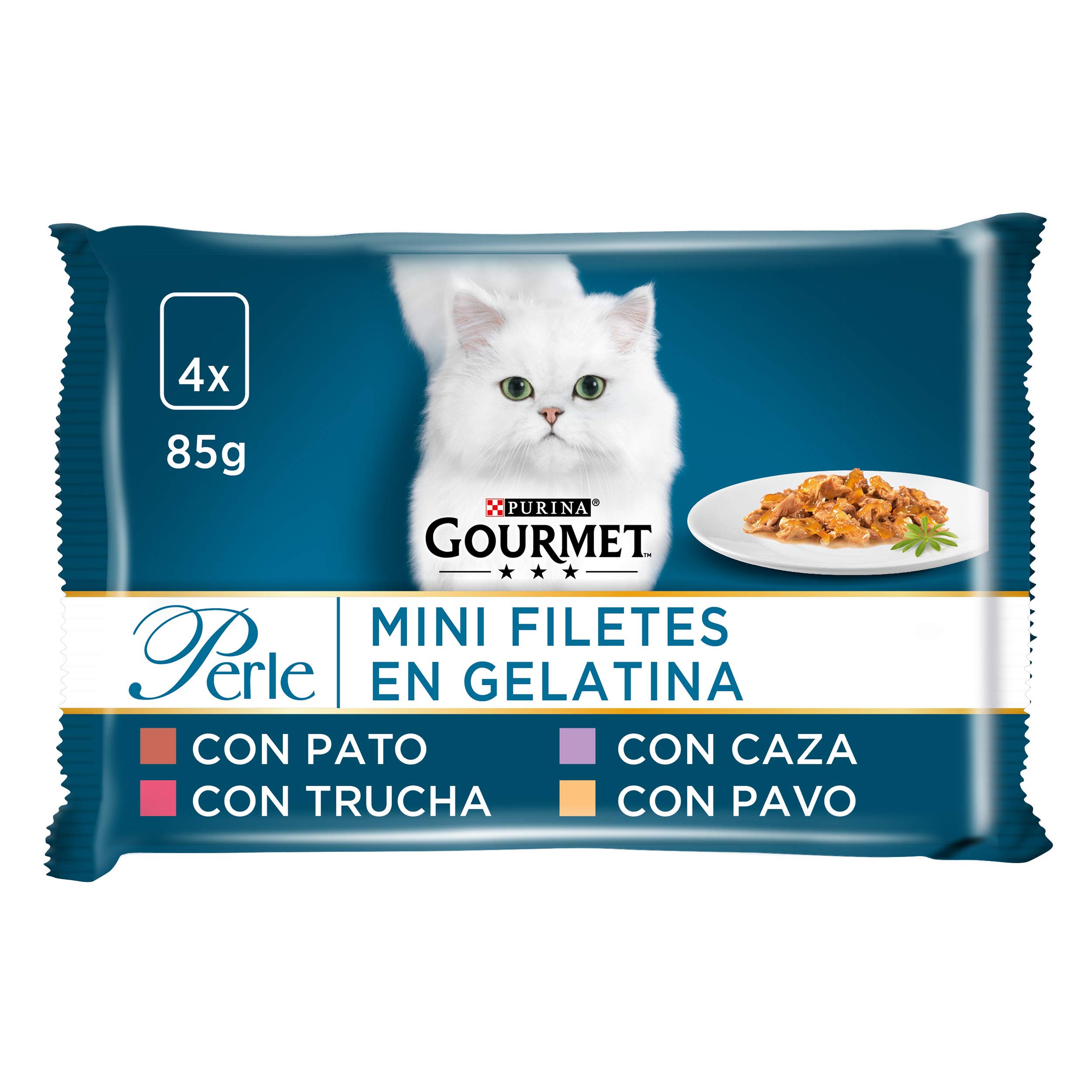 Made from selected high-quality ingredients. Without the addition of artificial colours, preservatives or flavourings. Complete food for adult cats, double temptation for meat and fish lovers. Delicious bite with meat or fish, cut into thin slices and elegantly served in delicious jelly to delight your cat's most refined taste. That's why Gourmet pearl has created fine gelatin leaves, delicate recipes that will awaken your cat's senses with an irresistible taste experience for every day. Your cat is a big spirit and sometimes it is very difficult to entice him.Purina Gourmet Parel, fijne lamellen in saus, 12 x [4 x 85 g]Gemaakt van geselecteerde hoogwaardige ingrediënten. Zonder toevoeging van kunstmatige kleur-, conserveringsmiddelen of aromastoffen. Compleet voer voor volwassen katten, dubbele verleiding voor vlees- en visliefhebbers. Fijne hap met vlees of vis, in dunne plakjes gesneden en elegant geserveerd in heerlijke gelei om de meest verfijnde smaak van je kat te verrukken. Daarom heeft Gourmet parel fijne gelatinebladeren gecreëerd, delicate recepten die de zintuigen van je kat met een onweerstaanbare smaakervaring voor elke dag zullen wekken. Je kat is een grote geest en soms is het erg moeilijk om hem te verleiden.
