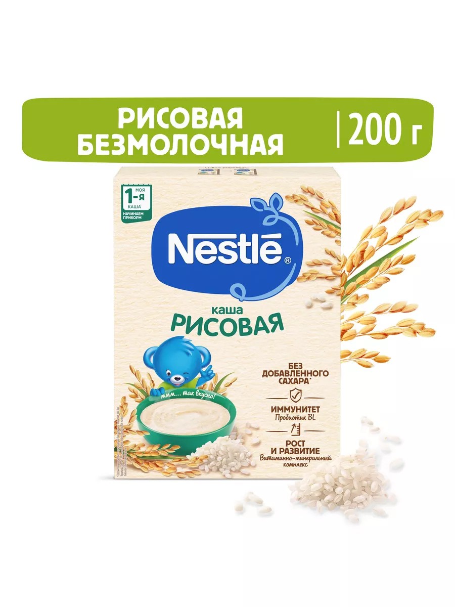 Каша Nestlé Безмолочная рисовая гипоаллергенная для начала прикорма 200г с бифидобактериями BL. Каша Нестле приготовлена с использованием особой технологии бережного расщепления злаков CHE. Благодаря этому в продукте появляется естественный сладкий вкус, каша лучше усваивается и имеет повышенную пищевую ценность. Приготовлена из безглютеновой крупы, гипоаллергенная. Является полезным сбалансированным прикормом для здоровых детей. Каша обогащена пробиотиками - живыми бифидобактериями BL. Они способствуют нормализации пищеварения, росту здоровой микрофлоры и укреплению иммунитета, что очень важно на начальном этапе введения прикорма. Каша содержит комплекс витаминов и минеральных веществ iRON+ для здорового роста и развития. Продукт может содержать глютен и молоко. Продукт упакован в модифицированной атмосфере с азотом.