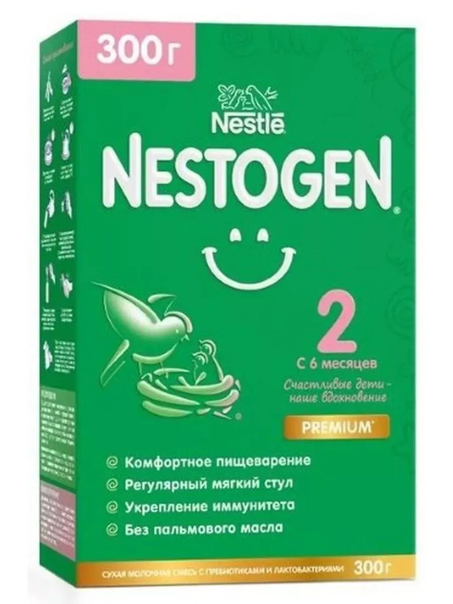 NESTOGEN 2 BABY MILK DRY MIXTURE WITH OMEGA-3 PUFAS AND LACTOBACILLA - was specially developed to provide balanced healthy nutrition and comfortable digestion for your baby. Age: from 6 months Nestogen 2 mixture with prebiotics and unique lactobacilli L.reuteri helps improve intestinal motility, form regular soft stools and establish healthy microflora. Healthy intestinal microflora is necessary for maintaining, developing and strengthening the immune system. Lutein and omega-3 PUFAs contribute to brain development. The mixture contains a balanced complex of vitamins and minerals for harmonious growth and development. Nestogen 2 mixture is a milk mixture intended for feeding children from 6 months as a dairy component of the child's diet along with complementary foods. It contains a balanced complex of vitamins and minerals for harmonious growth and development. Transition to The introduction of a new mixture should be done gradually. Caloric content / Energy value 67 kcal / 274 kJ Main components Proteins 1.38 g Carbohydrates 8.5 g Lactose 5 g Fats 3.0 g Linolenic acid 498 mg - Alpha-linolenic 58.1 mg Taurine 4.43 mg Docosahexaenoic acid 3.05 mg Maltodextrin 3 g Prebiotics 0.25 g L. Reuteri8.9?10?CFU/gMineralsMinerals (ash) 0.4 gSodium 29 mgPotassium 87.9 mgChlorides 47.8 mgCalcium 73.4 mgPhosphorus 40.8 mgCa/P 1.6 (per 100 g of dry powder)Magnesium 5.54 mgIron 0.97 mgCopper 0.05 mgZinc 0.7 mgIodine 18 μgManganese 9 μgSelenium 1.25 μgFluoride 8.3 μgVitaminsVitamin A 81.7 μgVitamin D 1.2 μgVitamin E 1.19 mgVitamin K 6.2 μgVitamin C 12.5 mgVitamin B 10.13 mgVitamin B 20.17 mgNiacin 0.6 mgVitamin B6 0.07 mgFolic acid 16.6 mcgPantothenic acid 0.76 mgVitamin B12 0.21 mcgBiotin 2.5 mcgCholine 11.1 mcgInositol 6.9 mcgL-Carnitine 1.2 mcgLutein 0.01 mcgNucleotides 2.0 mcgIMPORTANT NOTE: The ideal food for a breastfed baby is breast milk. Before deciding to bottle-feed using infant formula, consult your doctor or pharmacist.