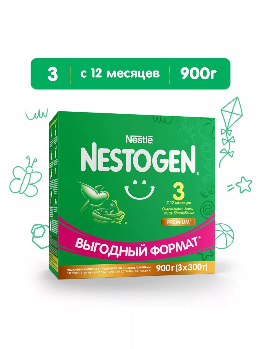 NESTOGEN 3 infant formula was specially developed to provide balanced, healthy nutrition and comfortable digestion for babies. With prebiotics and unique L. reuteri lactobacilli, NESTOGEN 3 improves intestinal motility, promotes regular, soft stools, and establishes a healthy microflora. Healthy intestinal microflora is essential for maintaining, developing, and strengthening the immune system. NESTOGEN 3 infant formula is a balanced product that replaces cow's milk in the diet of children over one year old. NESTOGEN 3 infant formula supplements a child's diet with the nutrients necessary for optimal growth and development. Ingredients: skim milk, maltodextrin, demineralized whey, a mixture of vegetable oils (low-erucic rapeseed, sunflower, high-oleic sunflower, coconut), milk fat, lactose, prebiotics (galactooligosaccharides (GOS) and fructooligosaccharides (FOS)), calcium citrate, emulsifier (soy lecithin), potassium citrate, calcium salts of orthophosphoric acid (calcium phosphate), sodium citrate, vitamins (sodium L-ascorbate, ascorbyl palmitate (C), DL-alpha-tocopherol acetate (E), calcium D-pantothenate (Pantothenic acid), nicotinamide (PP), thiamine mononitrate (B1), retinol acetate (A), pyridoxine hydrochloride (B6), riboflavin (B2), D3 Cholecalciferol (D), phytomedine (K), folic acid, D-biotin (Biotin), cyanocobalamin (B12)), sodium salts of orthophosphoric acid (sodium phosphate), potassium salts of orthophosphoric acid (potassium phosphate), magnesium citrate, acidity regulator potassium hydroxide, lactobacillus reuteri culture, iron sulfate, zinc sulfate, copper sulfate, potassium iodide, sodium selenate. Packed in a modified atmosphere with nitrogen. The product may contain fish oil.
