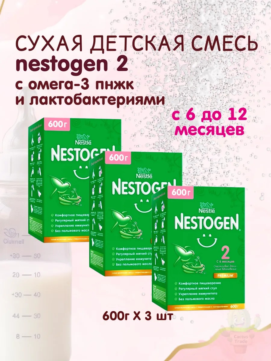| Комплектация | Смесь молочная Nestogen 2 600г с 6 месяцев; комплект из 3-х упаковок по 600гр |