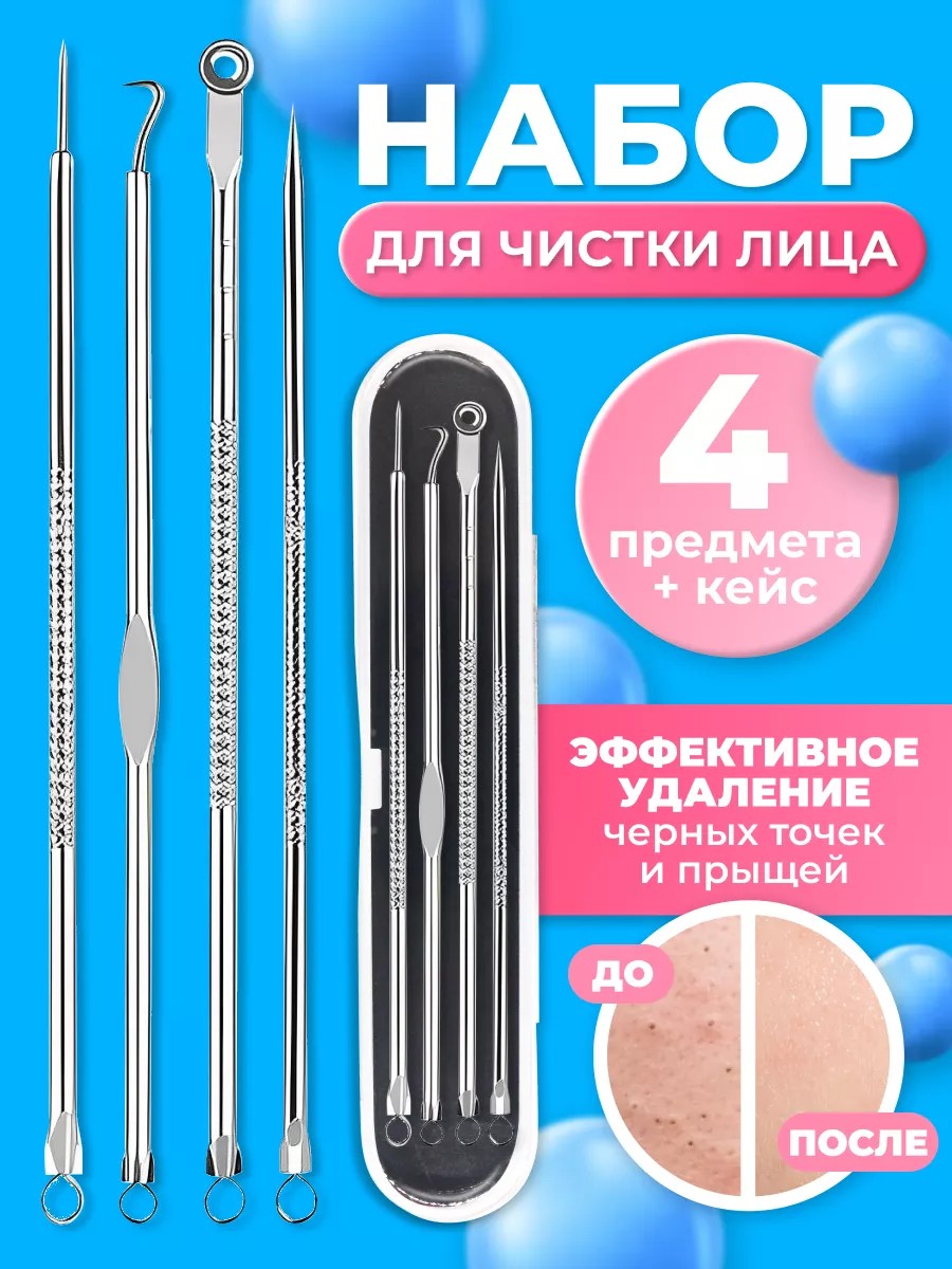 This cosmetic set includes tools specifically designed to remove pimples, blackheads, and blemishes.