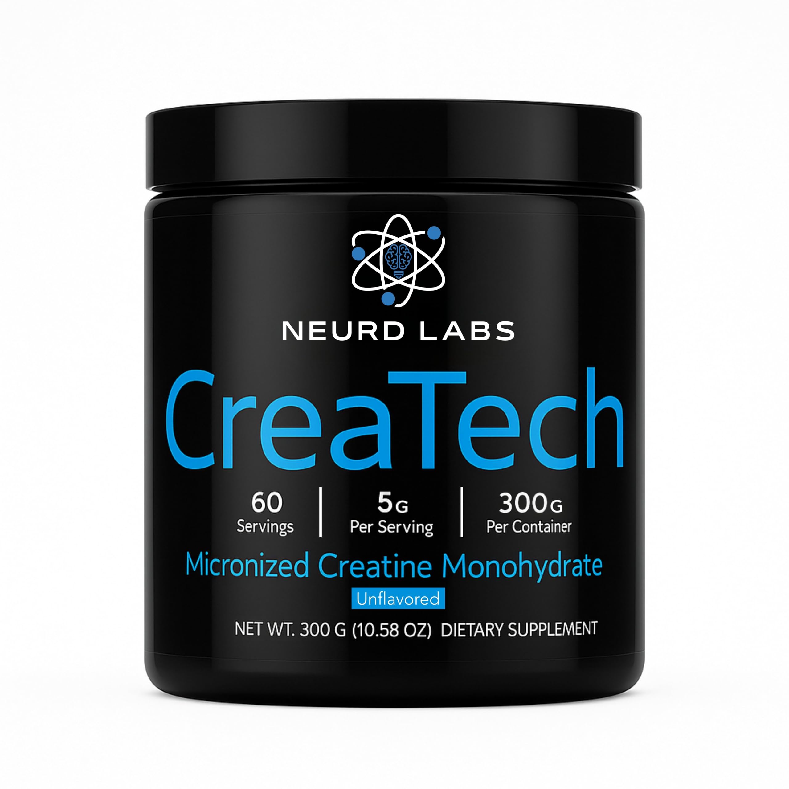 Fuel Your Body and Mind with CreaTech CreaTech by Neurd Labs delivers 300g of pure, micronized creatine monohydrate in every container—formulated to support not just physical strength, but also mental clarity and cognitive performance. While creatine is well-known for its athletic benefits, research incregly shows that it plays a critical role in brain energy metabolism, helping support short-term memory, focus, and overall mental stamina. Whether you're training in the gym or powering through a mentally demanding day, CreaTech gives your muscles and your mind what they need to perform at their best. Key Benefits: 5g Micronized Creatine Monohydrate Per Serving – Supports muscular strength, power output, and lean mass development. Brain Fuel – Shown to help enhance working memory, mental fatigue resistance, and neuroprotection—especially under sleep-deprived or high-stress conditions. Fast-Mixing, Unflavored Formula – No fillers, no flavors, just clean creatine that mixes effortlessly in water, juice, or coffee. Long-Lasting Supply – 60 servings per container keeps your routine consistent for two full months.Trusted Quality from Neurd Labs – Made in the USA in a GMP-certified facility with rigorous testing for purity, potency, and safety. No fillers or additives. Unflavored Stack-Friendly – Mixes seamlessly into any drink or stack regimen without altering flavor—perfect for smoothies, pre-workout, or morning coffee. Micronized for Better Absorption – Easy to mix and fast-absorbing formula, designed for optimal solubility and bioavailability—no clumping or gritty texture. Cognitive Neurological Support – Emerging research supports creatine's role in brain energy metabolism, helping improve focus, memory, and mental performance. Pure Micronized Creatine Monohydrate – Each 5g scoop delivers 100 pure, lab-tested creatine monohydrate to support muscle growth, strength, and mental energy.