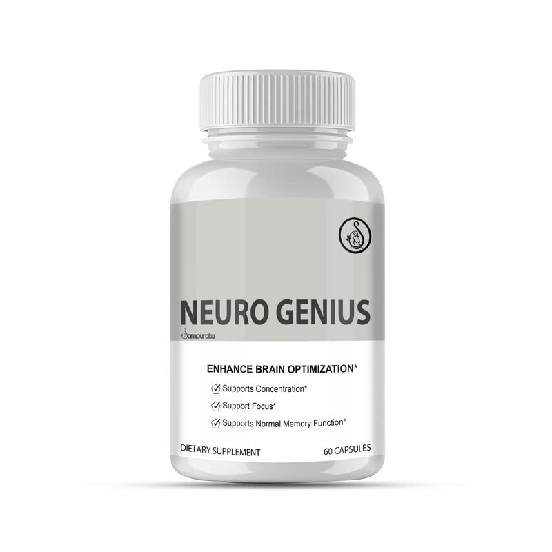 Neuro Genius Brain Supplement. Mood Enhancement: Includes components that can help improve mood and reduce stress, contributing to overall mental well-being. Natural Ingredients: Formulated with a blend of natural extracts and nutrients that are scientifically proven to support neurological health and cognitive function. Memory Support: Contains ingredients known to aid in memory retention and recall, helping you stay sharp and efficient. Enhanced Cognitive Function: Supports improved mental clarity, focus, and concentration for peak performance in your daily tasks.