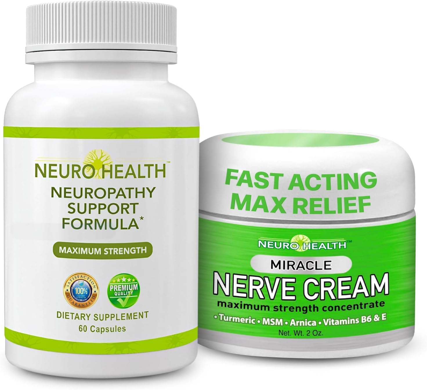 Neuro Health Nerve Support Formulawith B Vitamins & Alpha Lipoic Acid & Miracle Nerve Cream for Neuropathy - Maximum Strength Turmeric & Arnica Blend for Comprehensive Neuropathy Support (Combo Pack)