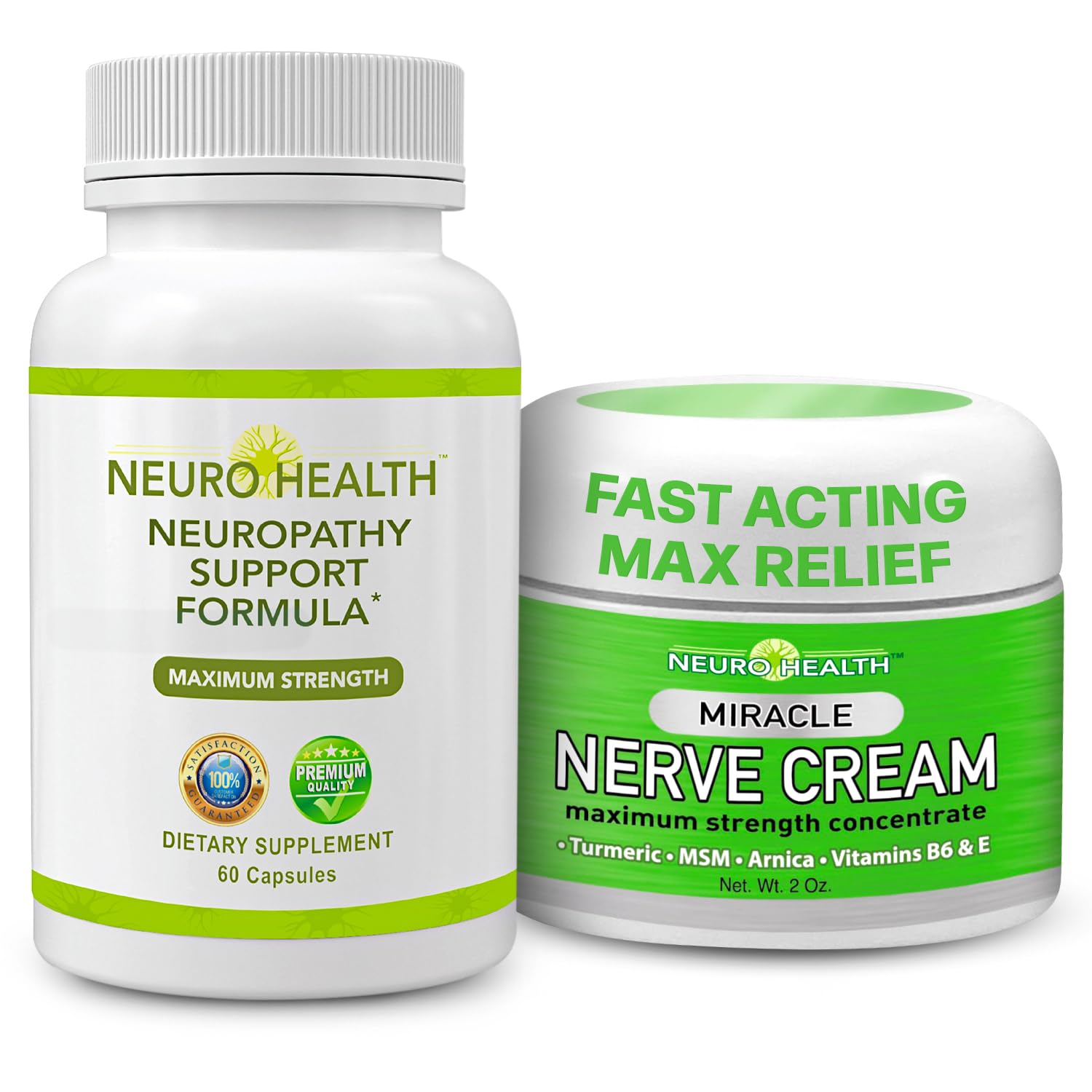 Neuro Health Nerve Support Formulawith B Vitamins & Alpha Lipoic Acid & Miracle Nerve Cream for Neuropathy - Maximum Strength Turmeric & Arnica Blend for Comprehensive Neuropathy Support