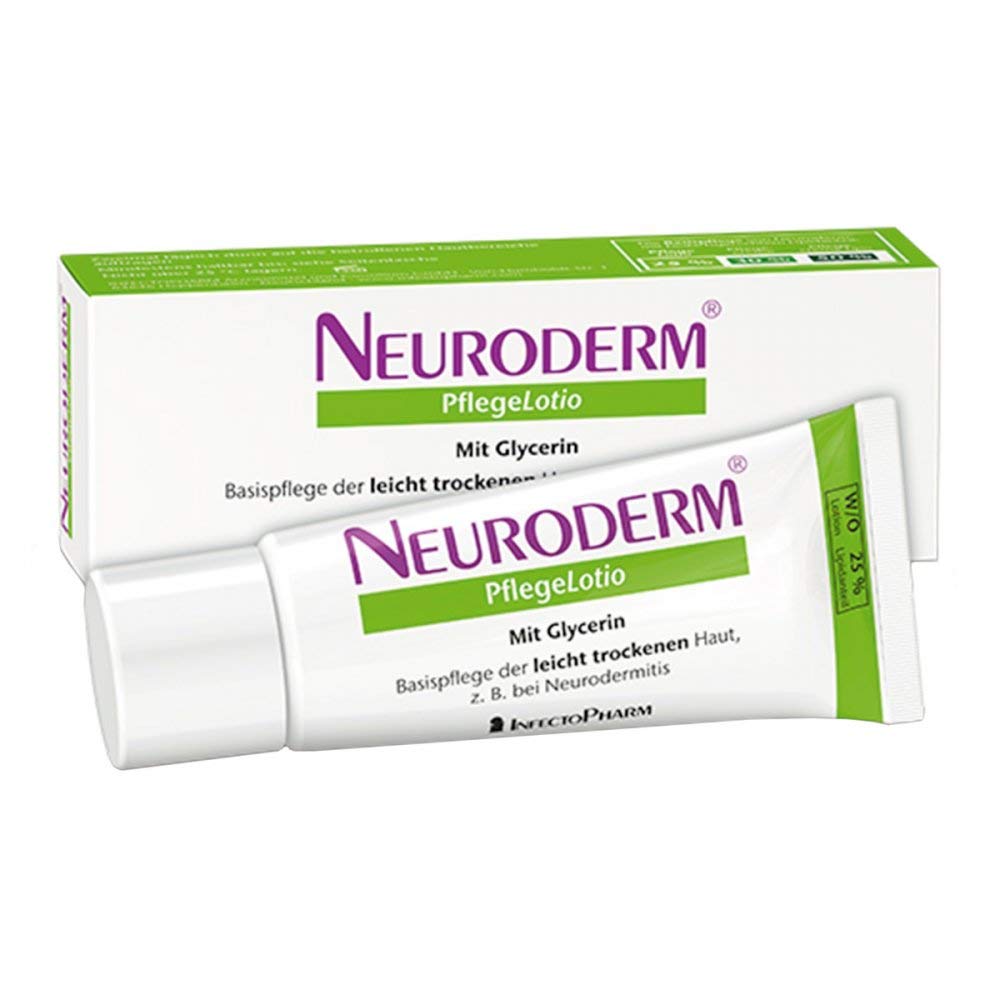 Regular basic care with care creams is the be-all and end-all of every neurodermatitis care.The sensitive and dry skin should be creamed at least twice a day in order to return sufficient moisture (retroat) and lipid (rear -fat).In this way, the skin barrier, which is disturbed in neurodermatitis, can be improved in the long term, which alleviates or even prevented itching and disease spurts.In addition, the use of medical oil baths plays an important role.They reduce the further drying out of the skin during bathing and thus also help to supply the dry and sensitive skin sufficiently with lack of moisture and fats.Neuroderm care car maintains and helps with neurodermatitis. The neuroderm care potio is ideal for daily care for dry skin, particularly for basic care for neurodermatitis.Neuroderm Posle Ootio with glycerin The neuroderm care potio is a lotion from the water-in oil type (W O type) for slightly dry to dry skin areas.With a lipid content of 25 , it moves particularly quickly, is easy to distribute and leaves a pleasant skin feeling.In addition, the protective barrier of the skin is strengthened.The high proportion of glycerin in the neuroderm care potio donates moisture to the skin. Warnings Only for external use.Avoid eye contact.Don't swallow!