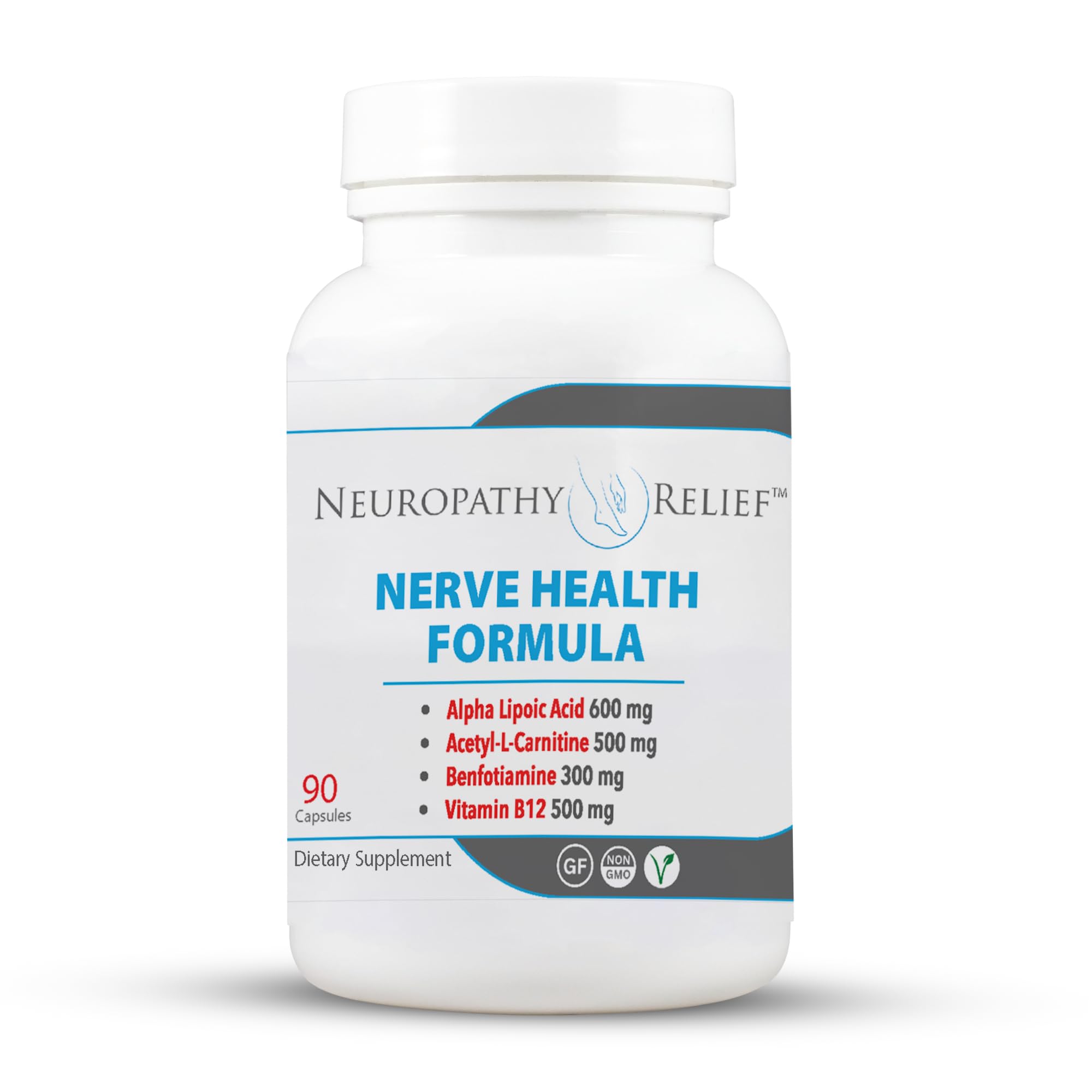 Neuropathy Relief Nerve Health Formula - Advanced Support with Alpha Lipoic Acid Acetyl-L-Carnitine Benfotiamine and Vitamin B12-90 Capsules