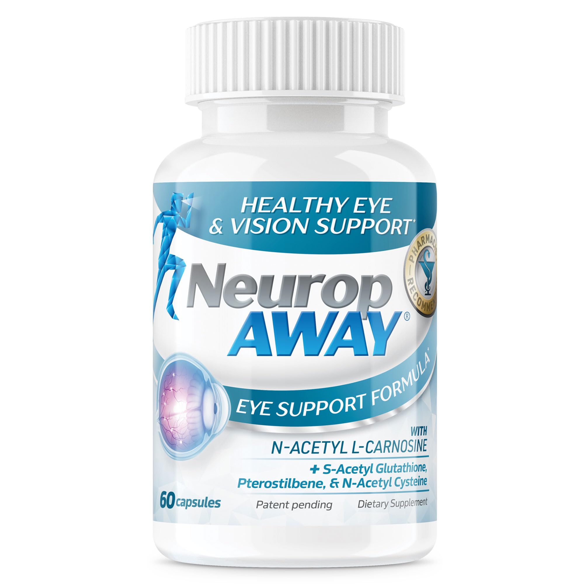 NeuropAWAY Eye Support Supplement 60CT with Lutein N-Acetyl L-Carnosine S-Acetyl Glutathione N-Acetyl Cystiene Pterostilbene Lycopene Zeaxanthin to Support Healthy Vision Helps Blurry and Dry Eyes Eye Support 60CT