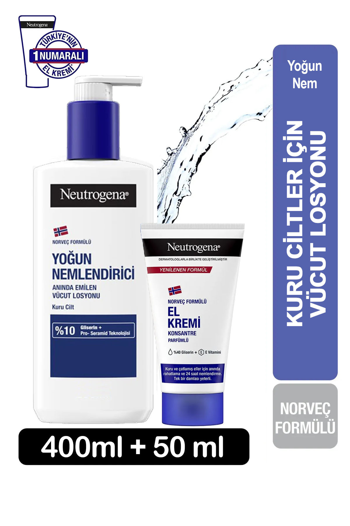 "Neutrogena Norveç Formülü Yogun Nemlendirici Vücut Losyonu Faydalari Nemlendirdiginiz Cildinizin Sanki Hiç Nemlendirilmemis Gibi Çabucak Yeniden Kuru Bir His Kazandigini Mi Düsünüyorsunuz? Neutrogena Kuru Ciltler Için Özel Bir Çözüm Sunuyor: Cildinize Derinlemesine Etki Ederek Tek Bir Uygulamayla.Aninda rahatlayan cildinizde kuruma ve pullanma sorunlari kalmaz. Ürün, ilk kullanimdan itibaren hissedilir bir rahatlama saglar. Etkisi 24 saat boyunca sürer.