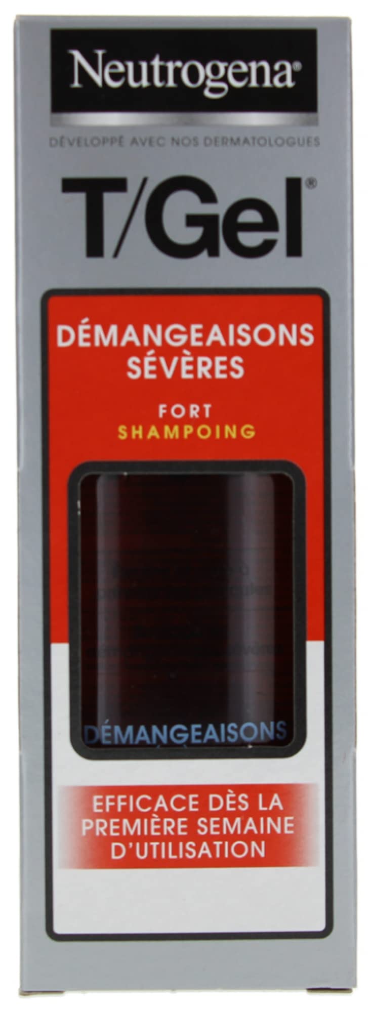 Neutrogena T Gel Strength Shampoo for Severe Itch: - Reduces dandruff from the first week of use. - Relieves even the most intense itching. Its alcohol-free, non-irritating formula soothes and provides long-lasting scalp relief. Clean, fresh, and healthy-looking, your hair is radiant. INGREDIENTS Aqua, Sodium C14-16 Olefin Sulfonate, Cocamidopropyl Betaine, Salicylic Acid, Sodium Chloride, Sodium Methyl Cocoyl Taurate, Sodium Chloride, Polyquaternium-22, Linoleamidopropyl PG-Dimonium Chloride Phosphate, Piroctone Olamine, Hexylene Glycol, Propylene Glycol, Sodium Citrate, Citric Acid, Sodium Bicarbonate, BHT, Tocopheryl Acetate, Parfum, Citronellol, CI 19140, CI 16035, CI 42090. DIRECTIONS 1. Wet your hair. 2. Apply a generous amount of shampoo to your hair, creating a lather. 3. Gently massage the shampoo into your scalp for about 30 seconds. 4. Rinse your hair and scalp thoroughly with water. 5. Repeat steps 2 through 4 if desired or if your hair is very dirty. 6. For best results, use T Gel Fort daily or as directed by a physician. See moreTo help fight dandruff, this product contains purifying salicylic acid and piroctone olamine. It cleanses and refreshes your hair and scalp. Its non-irritating formula soothes the scalp for lasting dandruff reduction. Specially formulated for maximum effectiveness on your scalp.Neutrogena T Gel Shampoing Démangeaisons Intenses, Elimine pellicules des las 1iere Semaine, 150 ml 150 ml (Lot de 1)DESCRIPTION DU PRODUIT DESCRIPTION DU PRODUIT Le shampooing T Gel Fort Démangeaisons sévères de Neutrogena : - Diminue les pellicules dès la première semaine d'utilisation. - Soulage des démangeaisons les plus intenses. Sa formule sans alcool et non irritante apaise et procure un soulagement durable du cuir chevelu. Prropres et frais, vos cheveux sont éclatants de santé. INGRÉDIENTS Aqua, Sodium C14-16 Olefin Sulfonate, Cocamidopropyl Betaine, Salicylic Acid, Sodium Chloride, Sodium Methyl Cocoyl Taurate, Sodium Chloride, Polyquaternium-22, Linoleamidopropyl PG-Dimonium Chloride Phosphate, Piroctone Olamine, Hexylene Glycol, Propylene Glycol, Sodium Citrate, Citric Acid, Sodium Bicarbonate, BHT, Tocopheryl Acetate, Parfum, Citronellol, CI 19140, CI 16035, CI 42090. MODE D'EMPLOI 1. Humidifiez vos cheveux. 2. Appliquez une quantité généreuse de shampooing sur vos cheveux, créant de la mousse. 3. Massez doucement le shampooing sur votre cuir chevelu pendant environ 30 secondes. 4. Rincez soigneusement vos cheveux et votre cuir chevelu avec de l'eau. 5. Répétez les étapes 2 à 4 si vous le souhaitez ou si vos cheveux sont très sales. 6. Pour de meilleurs résultats, utilisez T Gel Fort quotidiennement ou selon les directives d'un médecin. Voir plusPour aider à combattre les pellicules, ce produit contient de l'acide salicylique purifiante et de la piroctone olamine. Nettoie et rafraîchit vos cheveux et votre cuir chevelu. Sa formule non irritante apaise le cuir chevelu pour une diminution durable des pellicules. Spécialement formulé pour une efficacité maximale sur votre cuir chevelu.