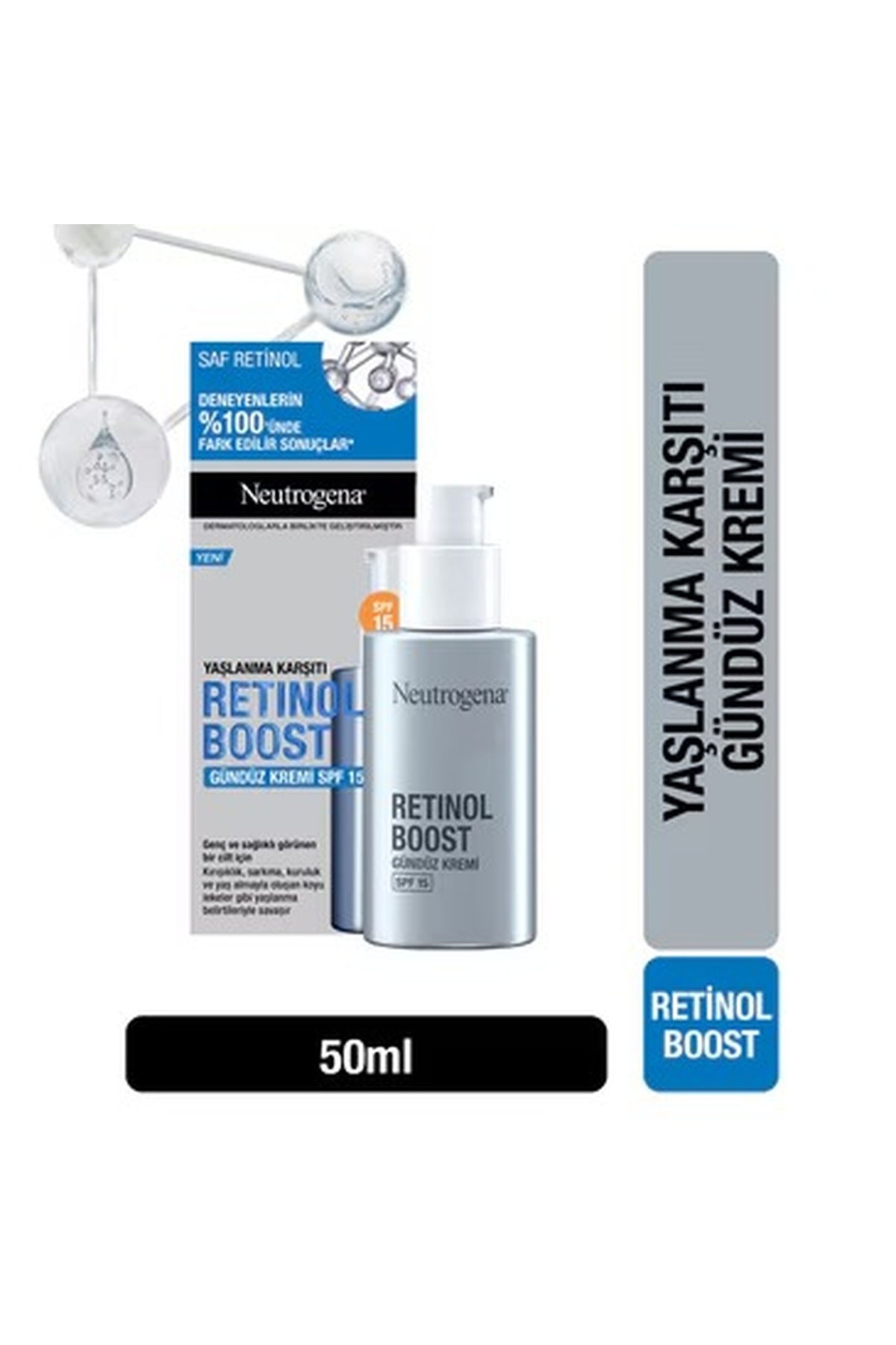 Retinol Boost series, developed with Neutrogena's 25 years of retinol expertise It fights wrinkles, loss of elasticity and shine, dryness and dark spots, and signs of aging. Containing pure retinol, the series offers an effective anti-aging skin care routine consisting of 4 stages: day cream, night cream, serum and eye cream. With the pure retinol, myrtle plant extract and hyaluronic acid it contains, it visibly reduces the signs of aging on the skin in just 1 week, providing a younger and healthier skin appearance.