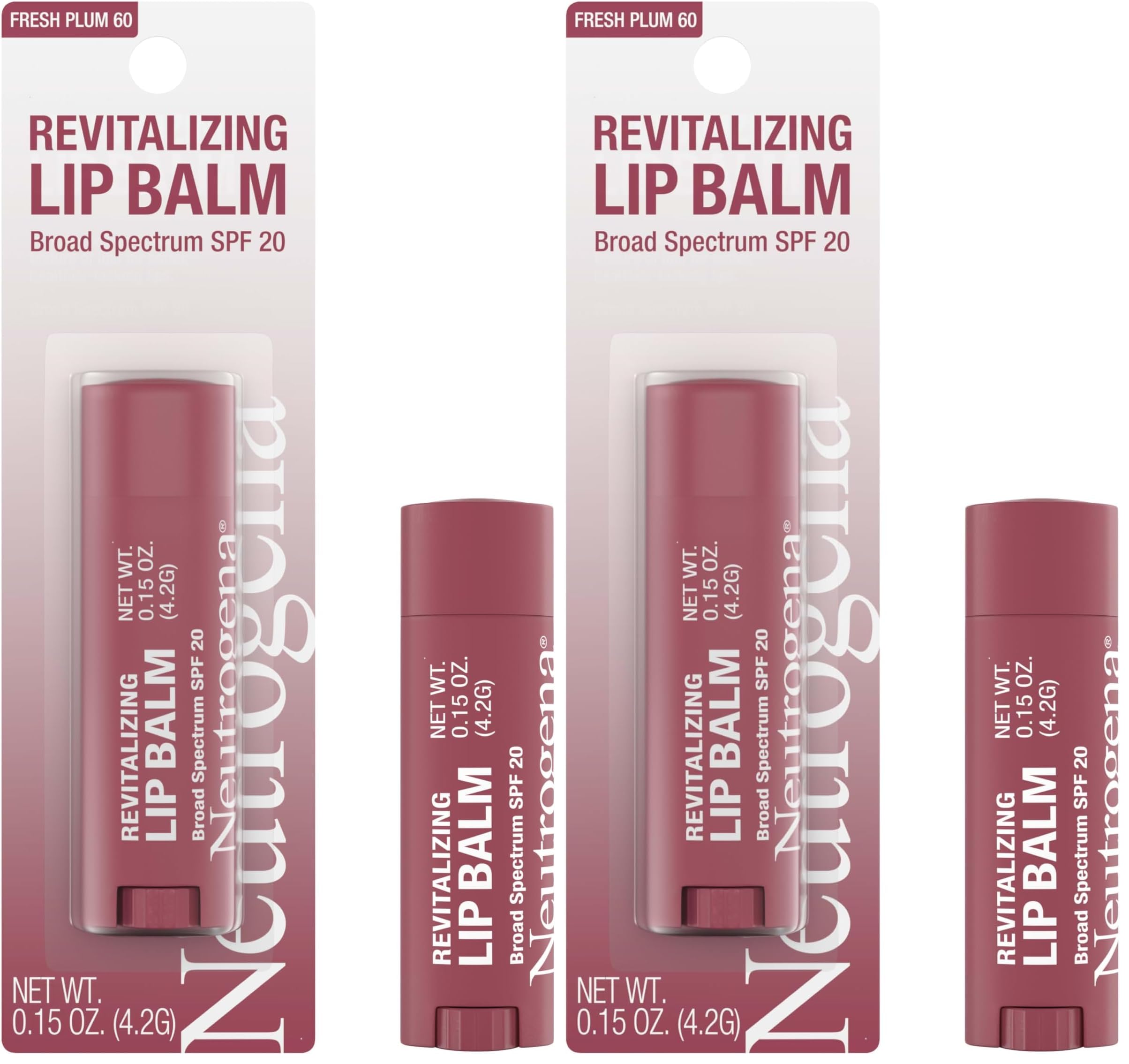 Neutrogena Revitalizing Tinted Lip Balm with SPF 20 Hydrating Tinted Lip Care with Sunscreen Moisturizing Sheer Tint for Softer Healthier-Looking Lips Sheer Fresh Plum 60 0.15 oz (Pack of 2) 0.15 Ounce (Pack of 2)