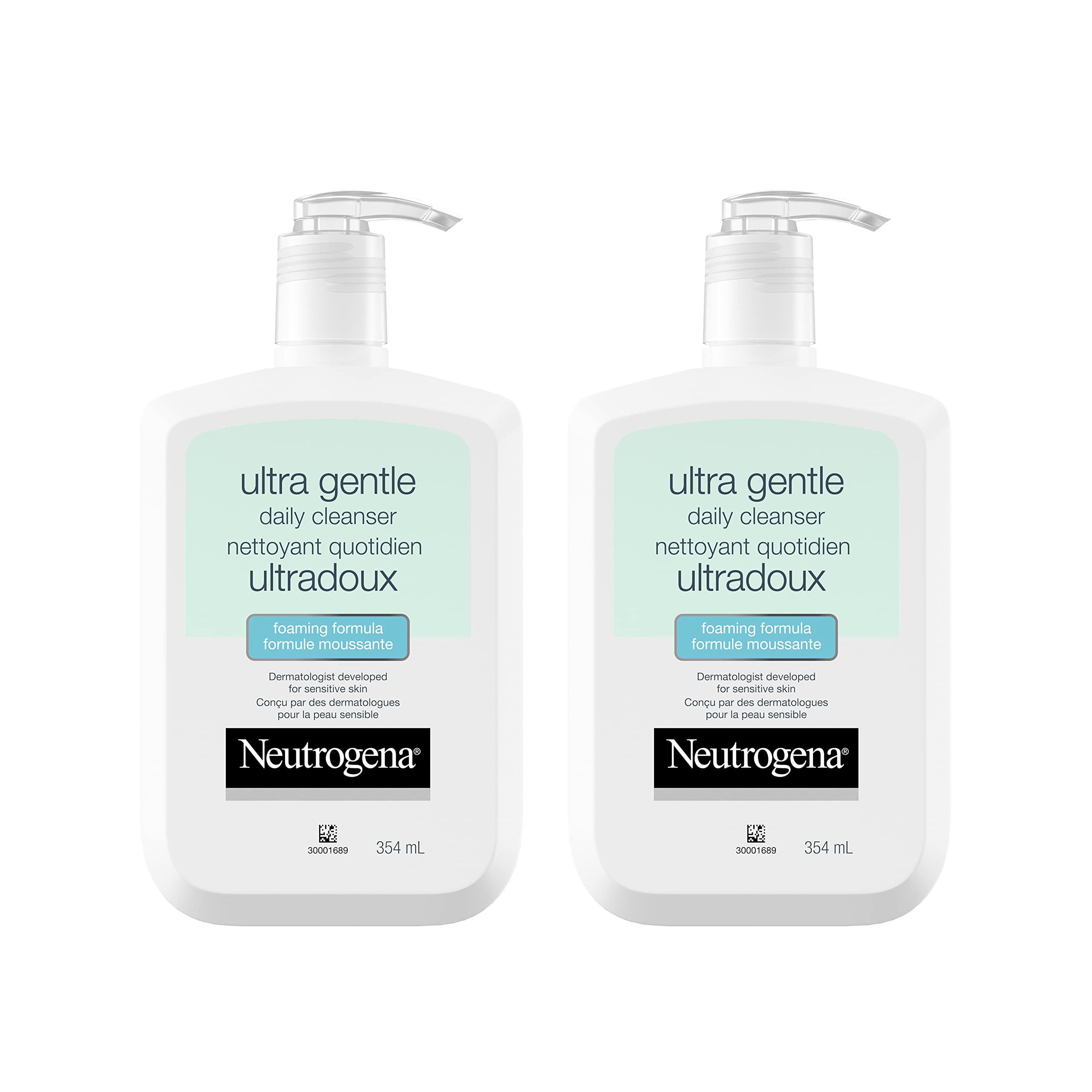 Now in an exclusive 2-pack. This cleanser doesn't disrupt the skin's natural moisturize balance and won't over-dry skin. Suitable for sensitive skin, made soap-free, dye free and non-comedogenic, so it won't clog pores or cause acne. This face cleanser developed by dermatologists for sensitive skin and is hypoallergenic. Neutrogena ultra gentle daily cleanser, foaming formula, 354 ml is a gentle makeup removing face wash.