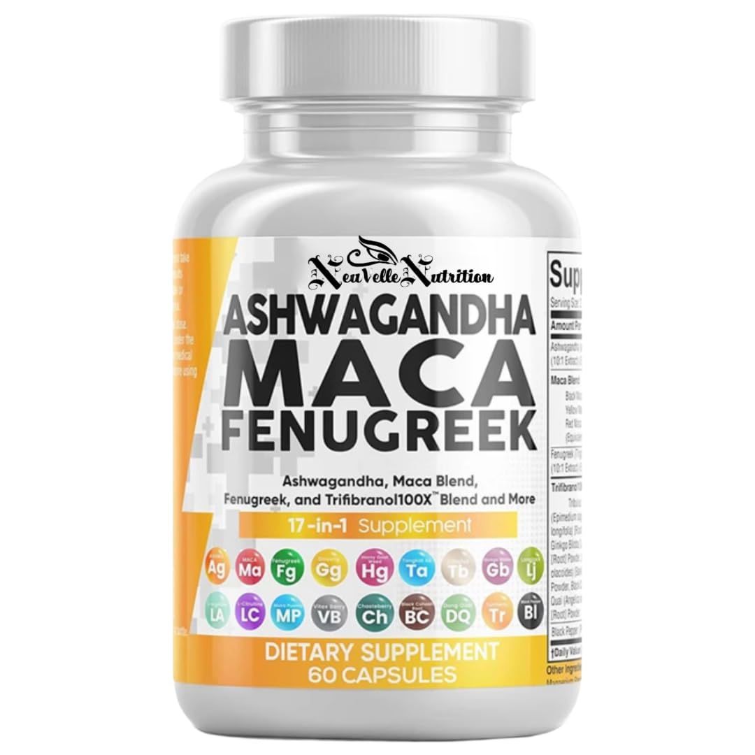 Experience a balanced approach to daily wellness with NeuVelle Nutrition Ashwagandha Maca Fenugreek 17-in-1 Herbal Supplement. This comprehensive adaptogenic blend is crafted for men and women seeking a natural way to support energy, mood, focus, and overall vitality. This advanced formula delivers 17 carefully selected herbs and botanicals, including adaptogens, nutrient-dense roots, antioxidant-rich extracts, and traditional wellness plants. Together, they help support everyday resilience, mental clarity, and a balanced sense of well-being. Perfect for individuals looking to support: Calmness and stress resilience Natural daily energy Mental clarity and focus Overall vitality and wellness A convenient all-in-one herbal routine Manufactured in the USA in a GMP-certified, third-party tested facility, this formula is non-GMO, gluten-free, and includes black pepper extract to help enhance nutrient absorption. If you want a reliable, nature-based supplement for daily wellness, this 17-in-1 herbal blend is an excellent addition to your routine.✓ CLEAN, PURE FORMULA NON-GMO MADE IN USA Produced in a GMP-certified facility, third-party tested for quality and purity. Non-GMO, gluten-free, and enhanced with black pepper extract for improved absorption and bioavailability. HERBAL NOOTROPIC ANTIOXIDANT BLEND Includes ginkgo biloba, grape seed, and turmeric to help support cognitive performance, circulation, and antioxidant activity—ideal for individuals seeking everyday clarity and wellness support. ? NATURAL ENERGY ENDURANCE SUPPORT Features energizing botanicals like ginseng, maca, and fenugreek—ingredients historically used to help support natural daily energy, endurance, and motivation without caffeine or stimulants. ADAPTOGENIC SUPPORT FOR STRESS, CALM BALANCE Ashwagandha and maca are well-known adaptogenic herbs traditionally used to help the body respond to occasional stress, encourage relaxation, and promote a balanced mood throughout the day. COMPLETE 17-IN-1 HERBAL WELLNESS COMPLEX Premium blend featuring Ashwagandha, Maca Root, Fenugreek, Tribulus, Ginseng, Tongkat Ali, Ginkgo Biloba, Acerola, Grape Seed, Ginger, Turmeric, Black Pepper more—designed to help support daily vitality, balance, and overall wellness.