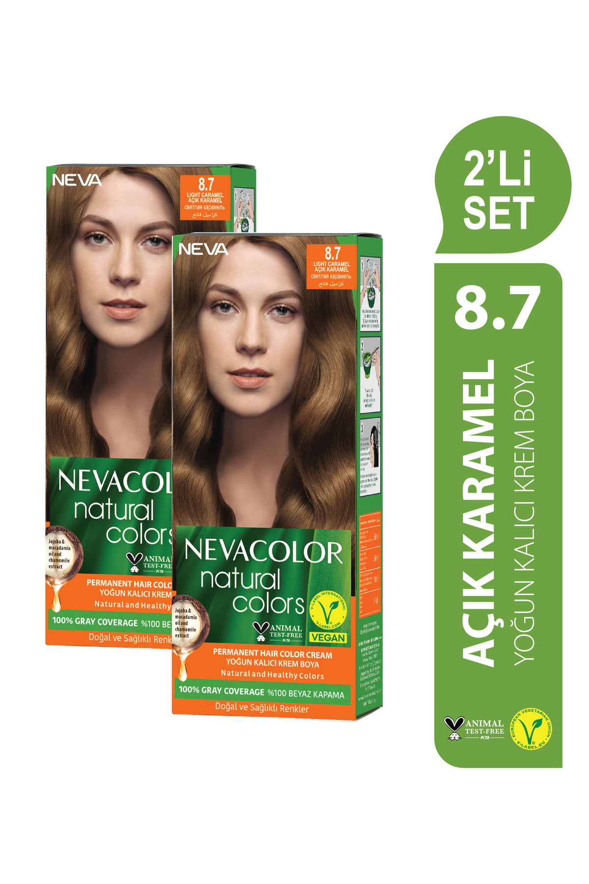 Neva Color Natural Colors 2-PIECE SET 8.7 LIGHT CARAMEL Permanent Cream Hair Dye Set