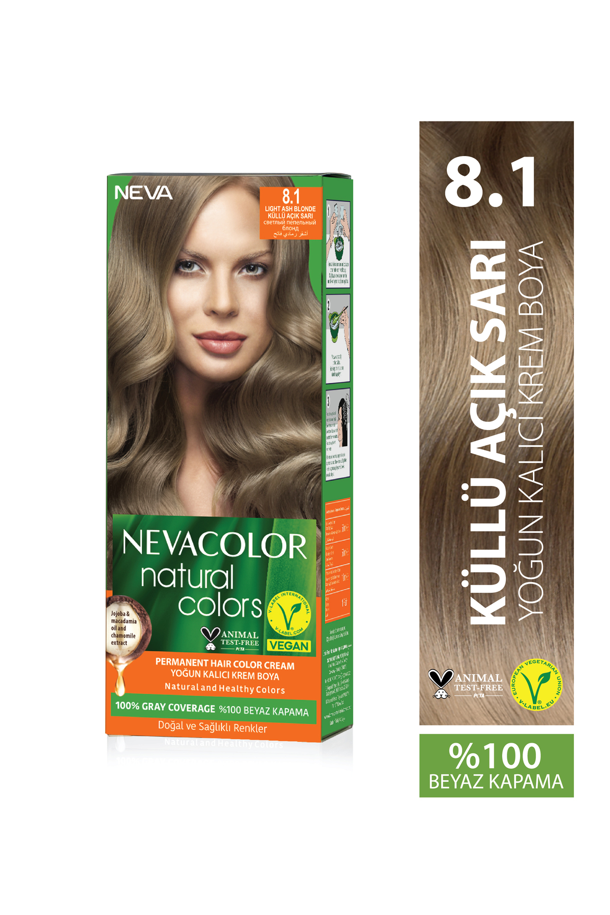 Neva Color Natural Colors 8.1 ASH LIGHT BLONDE Permanent Cream Hair Dye Set