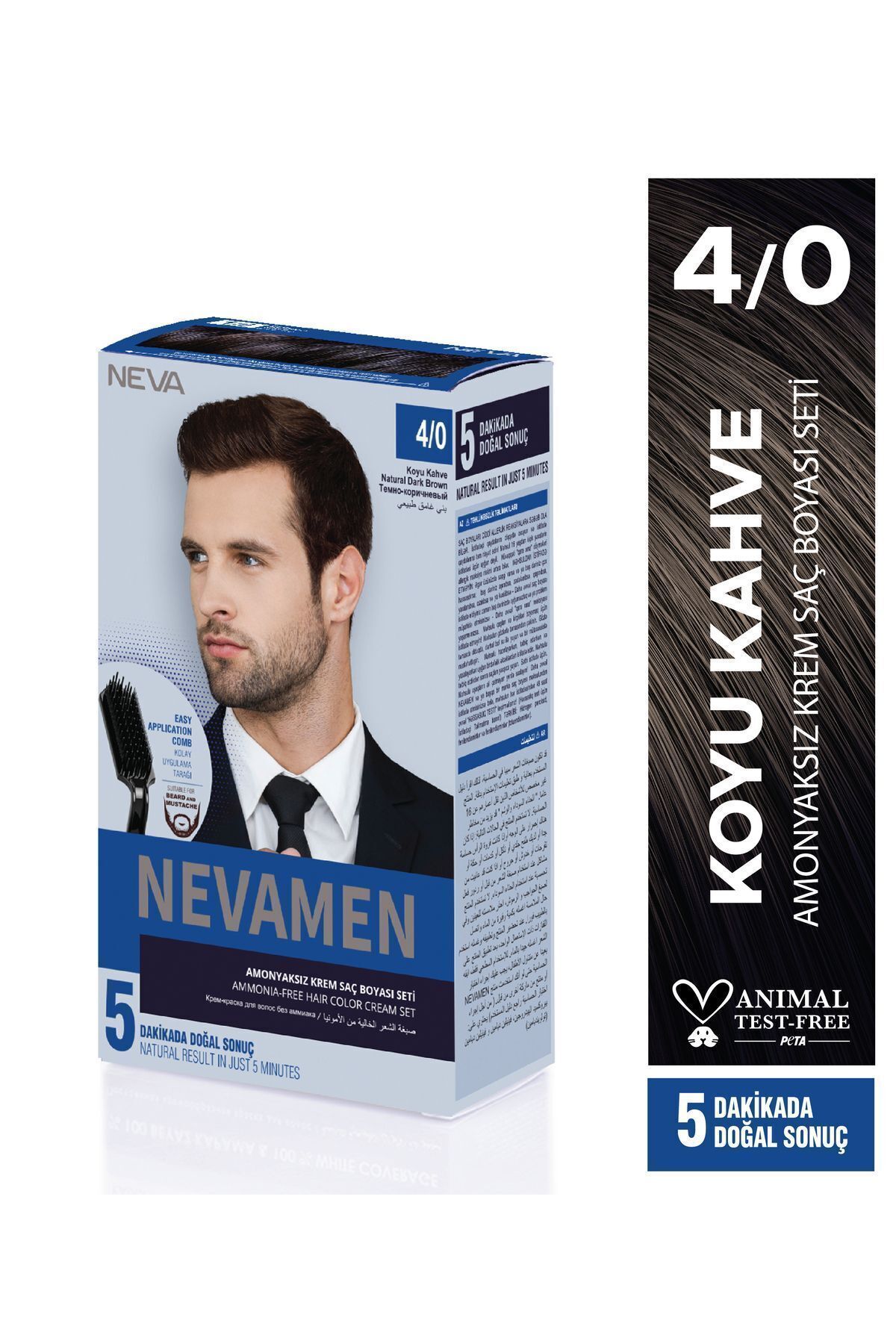 Neva Men 4/0 Natural Dark Brown - DARK BROWN Ammonia Free Cream Hair Dye Set
