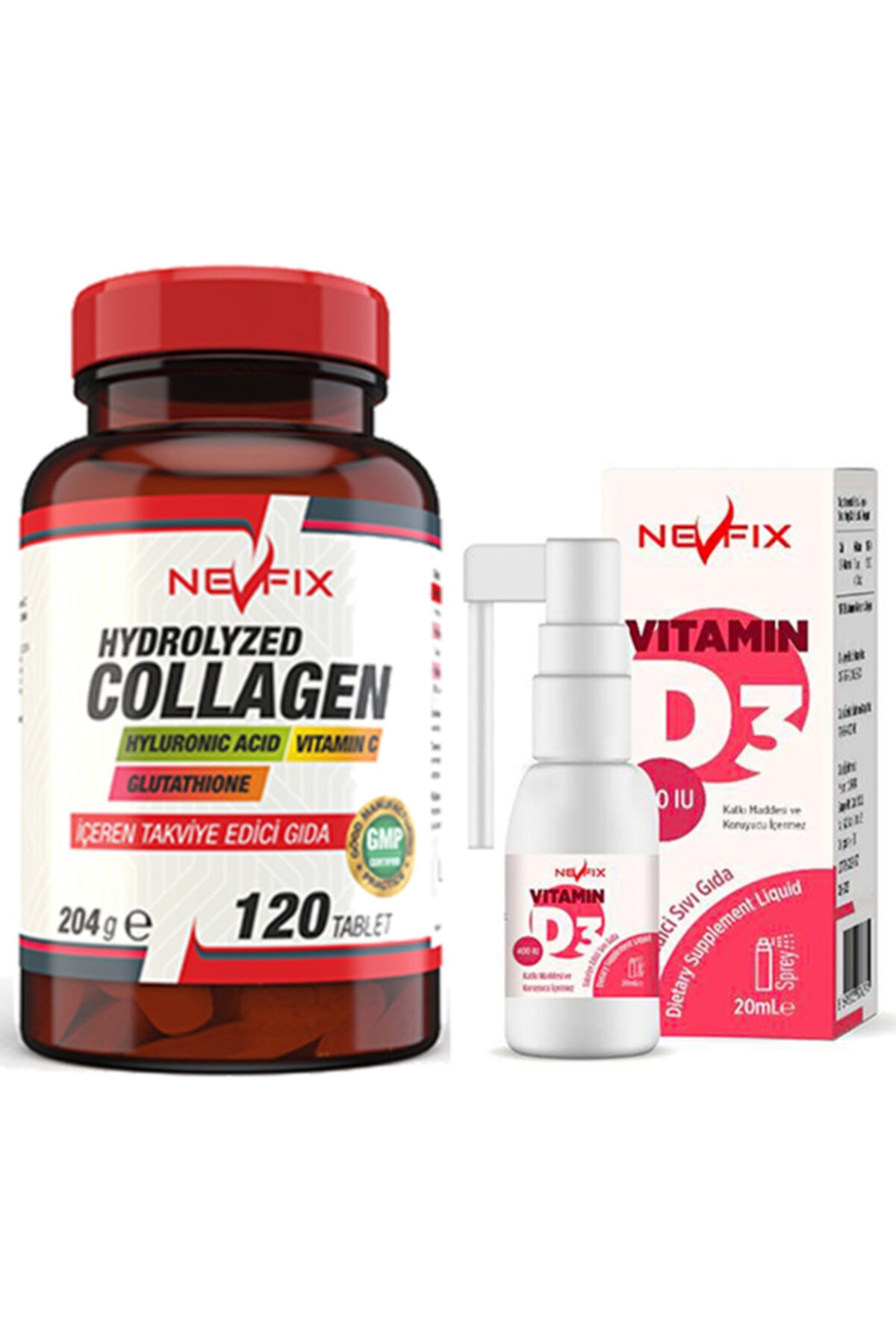 Nevfix Collagen Acid Vitamin C Glutathione 120 Tablet & Vitamin D3 400 Iu 20 Ml Spray