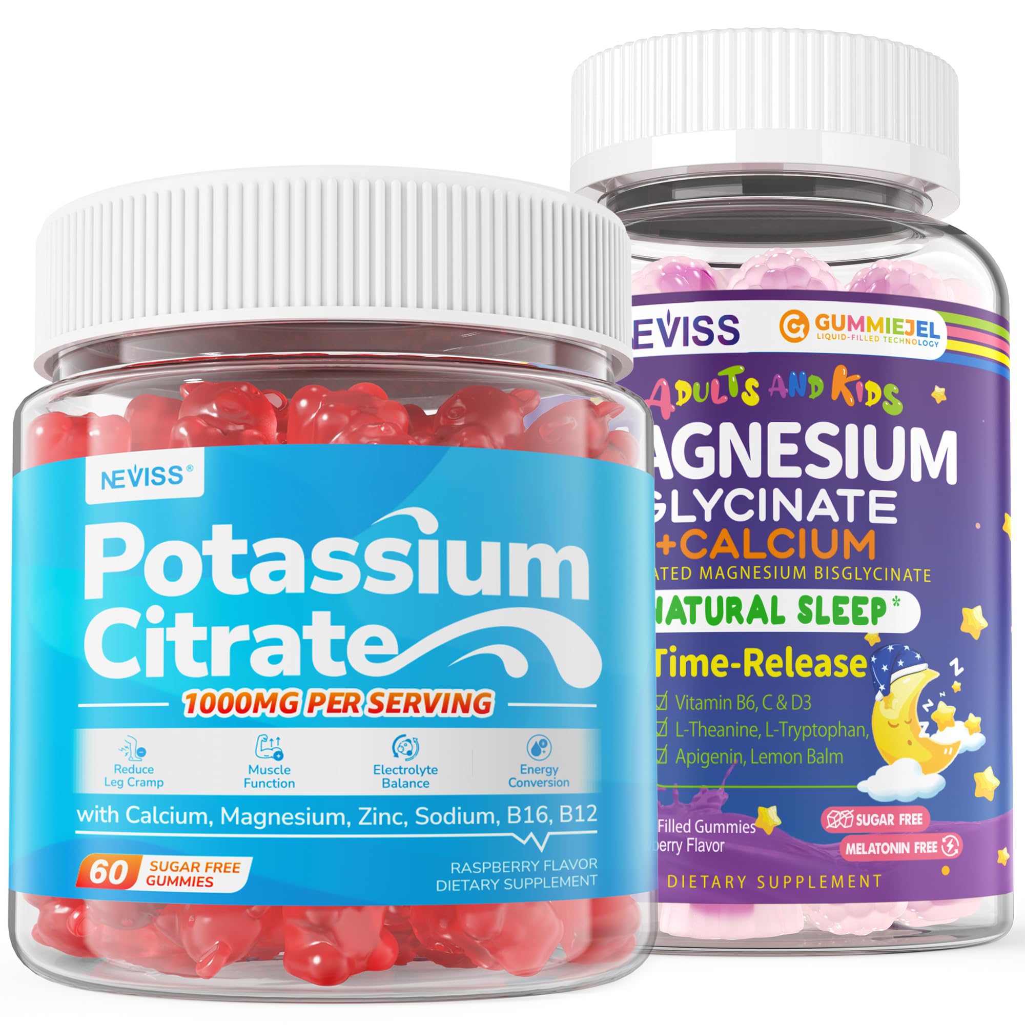Neviss 1 Pack Magnesium Glycinate Gummies + 2 Pack Potassium Citrate 1000mg Gummies